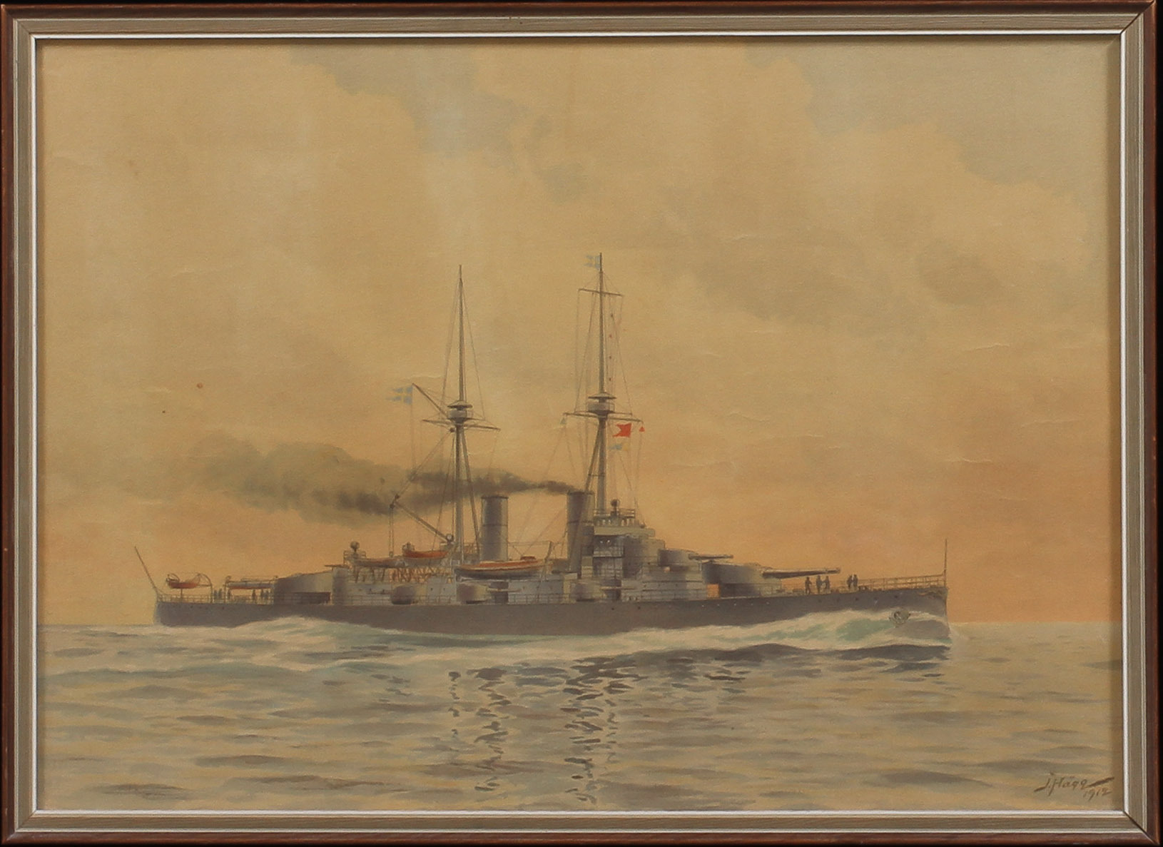 508554. JACOB HÄGG. Pansarskepp, litografiskt tryck, signerad i trycket.