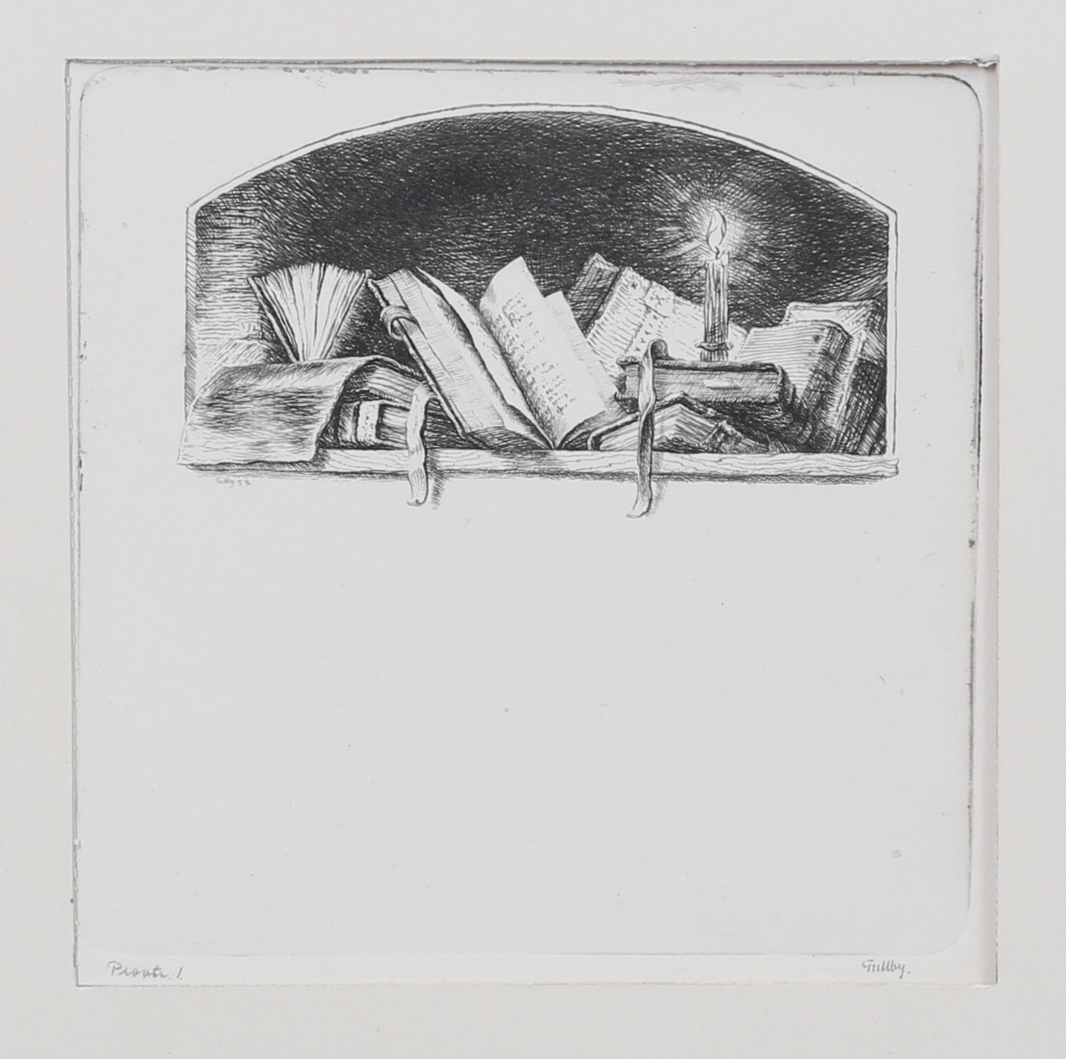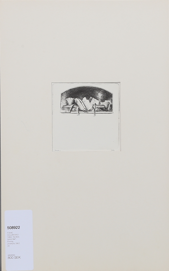 508922. FOLKE GULLBY(1912-1982). "Ex libris Astrid Hall". Etsning, provtryck, 1952.