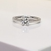 Förlovningsdiamantringen är inställd med en rund briljantslipad diamant.