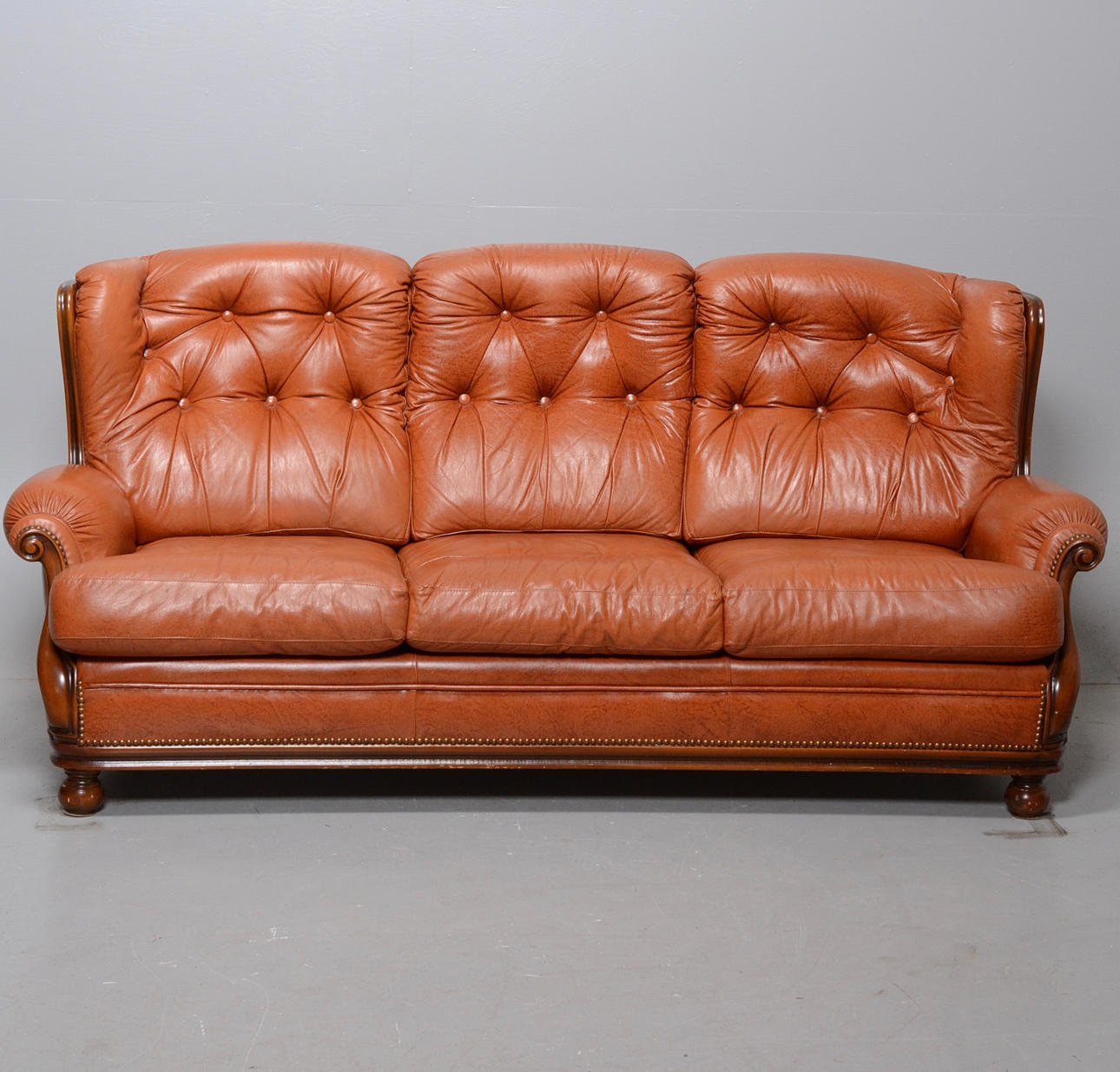 Stomme i boat trä, bruna stoppade dynor.