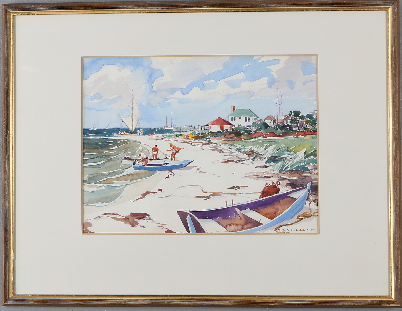513113. CARL IVAR GILBERT. Strandmotiv, akvarell, singerad.