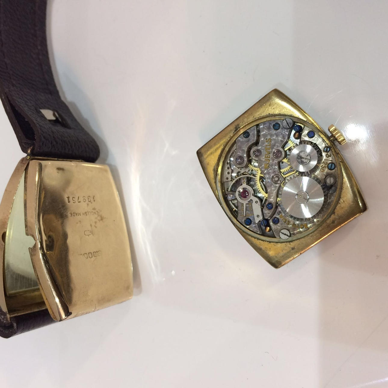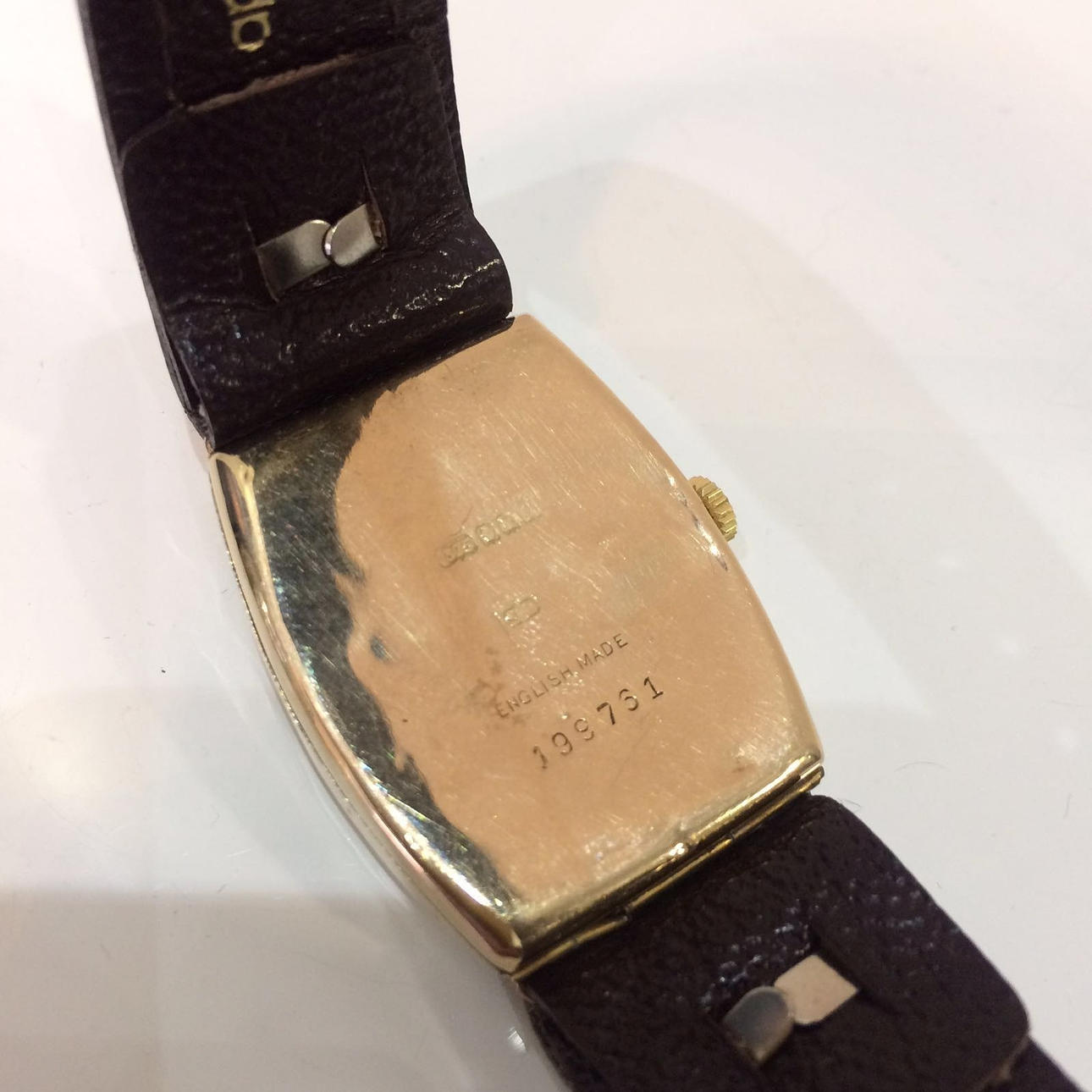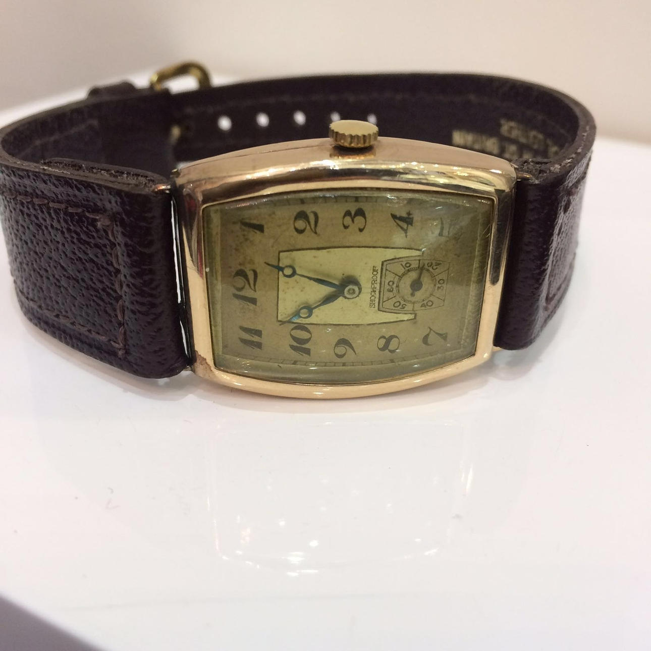 Kännetecknat 9ct gult guld Stötsäker mekanisk klocka.