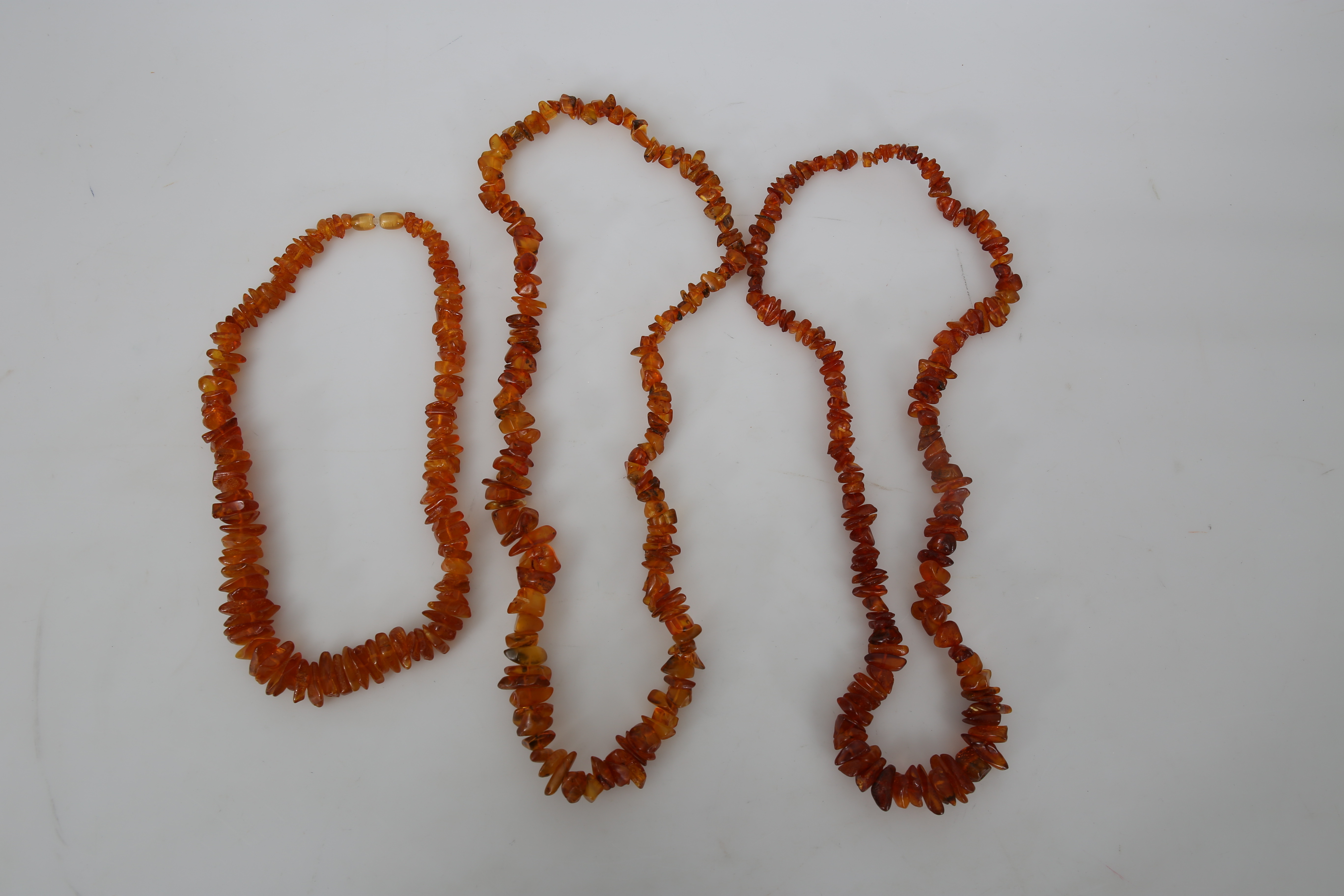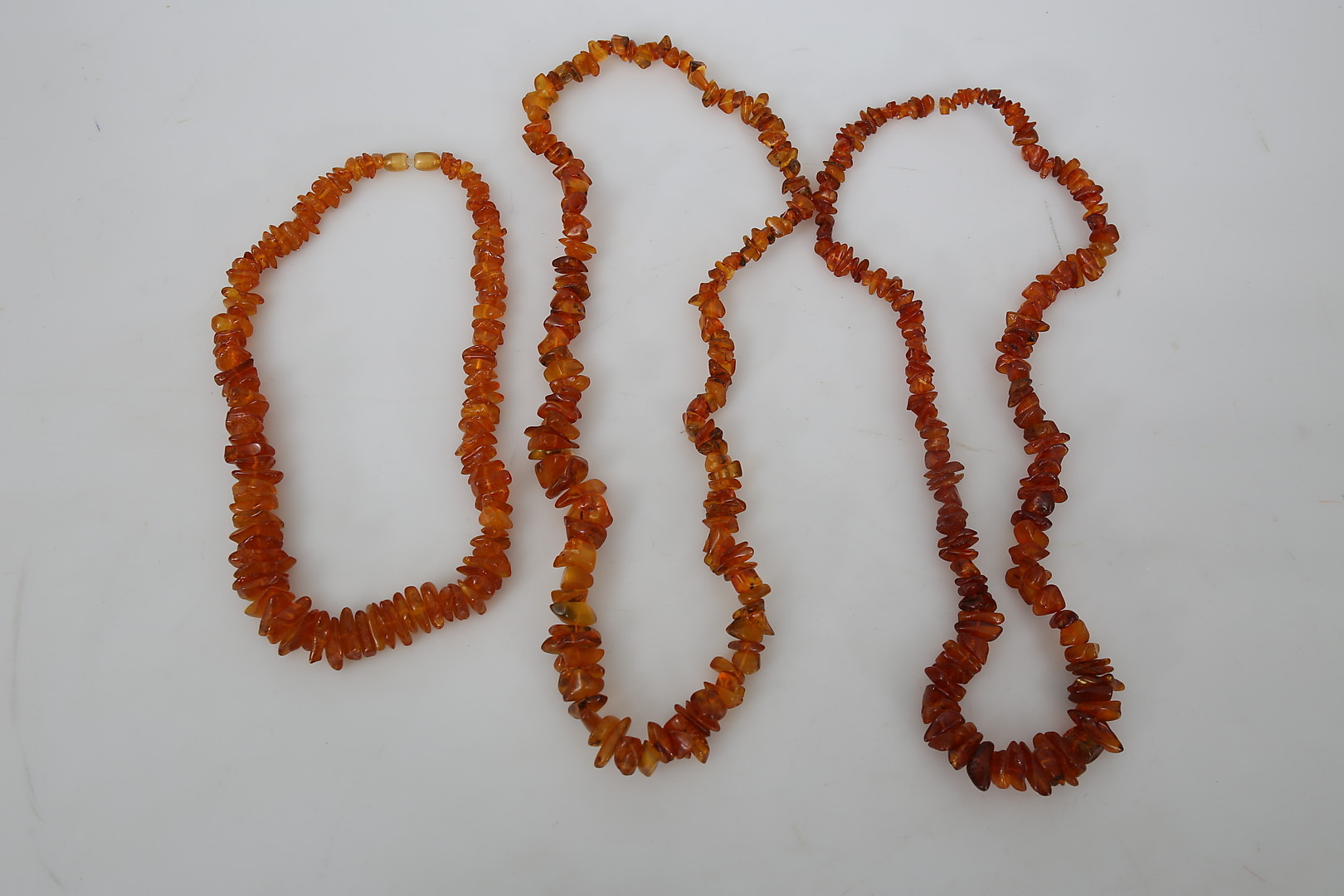 513889. COLLIER, bärnsten, 3 stycken, 1900-talets andra hälft.