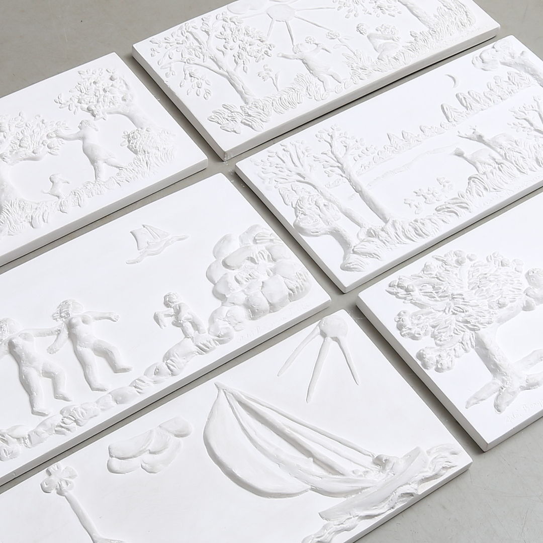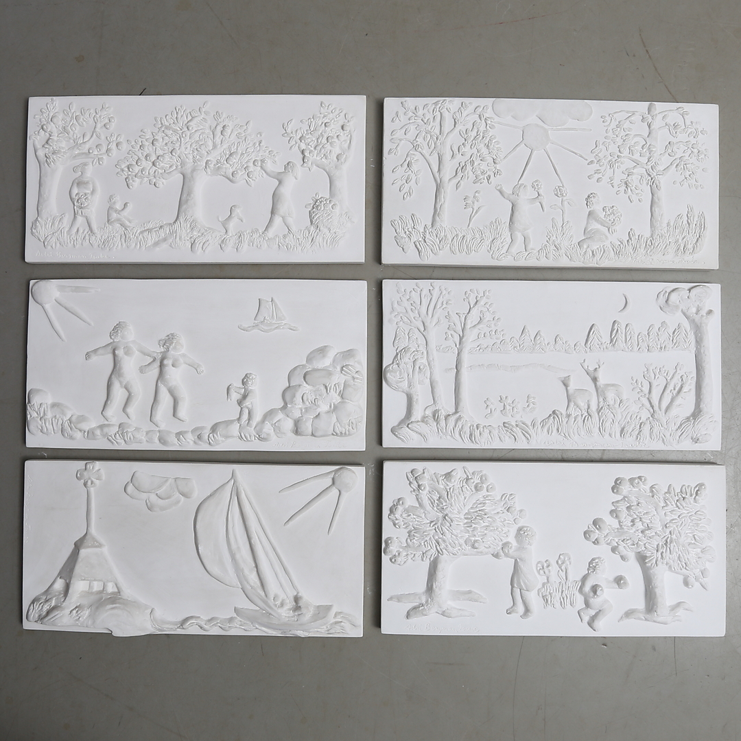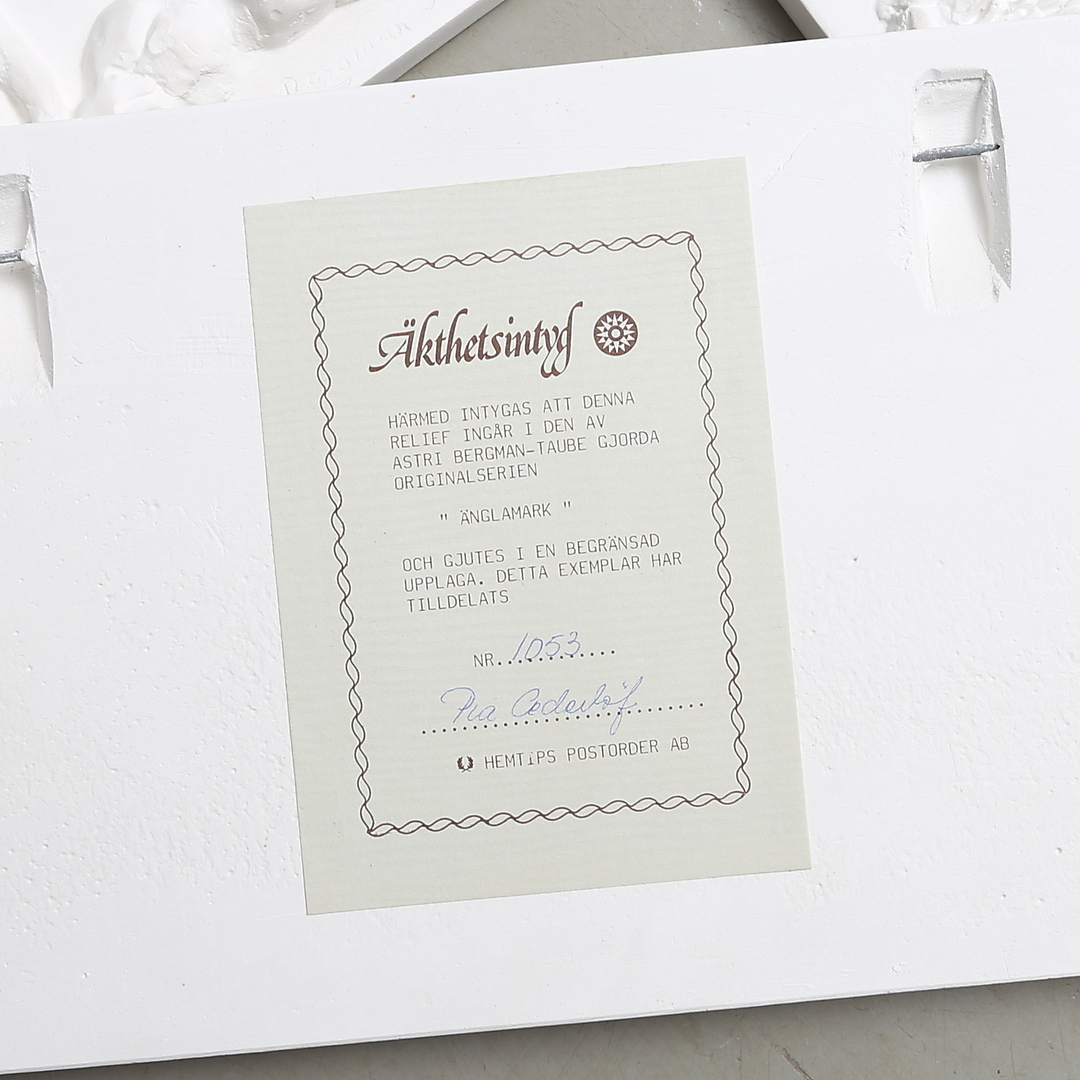 513902. ASTRI BERGMAN-TAUBE. 6 st, väggreliefer "Änglamark", gips.