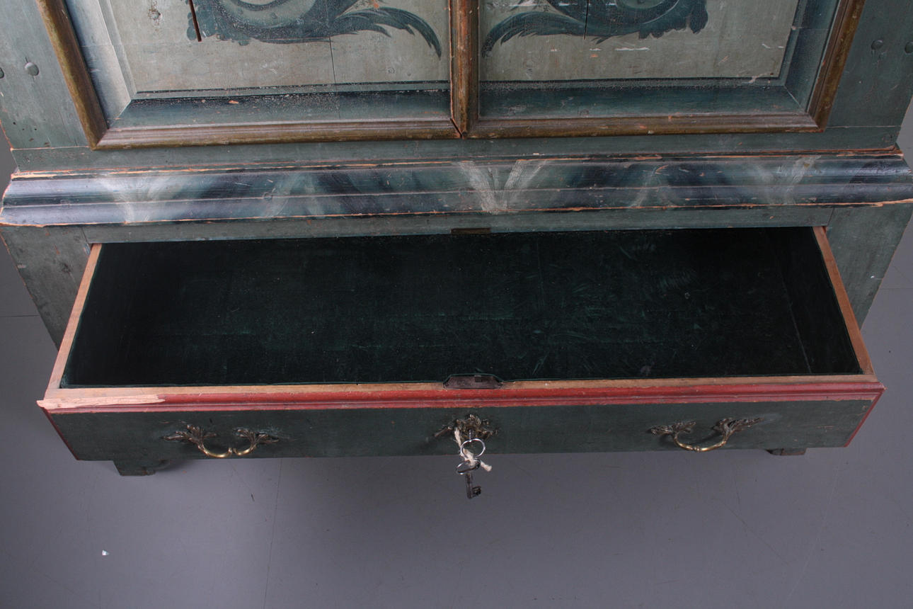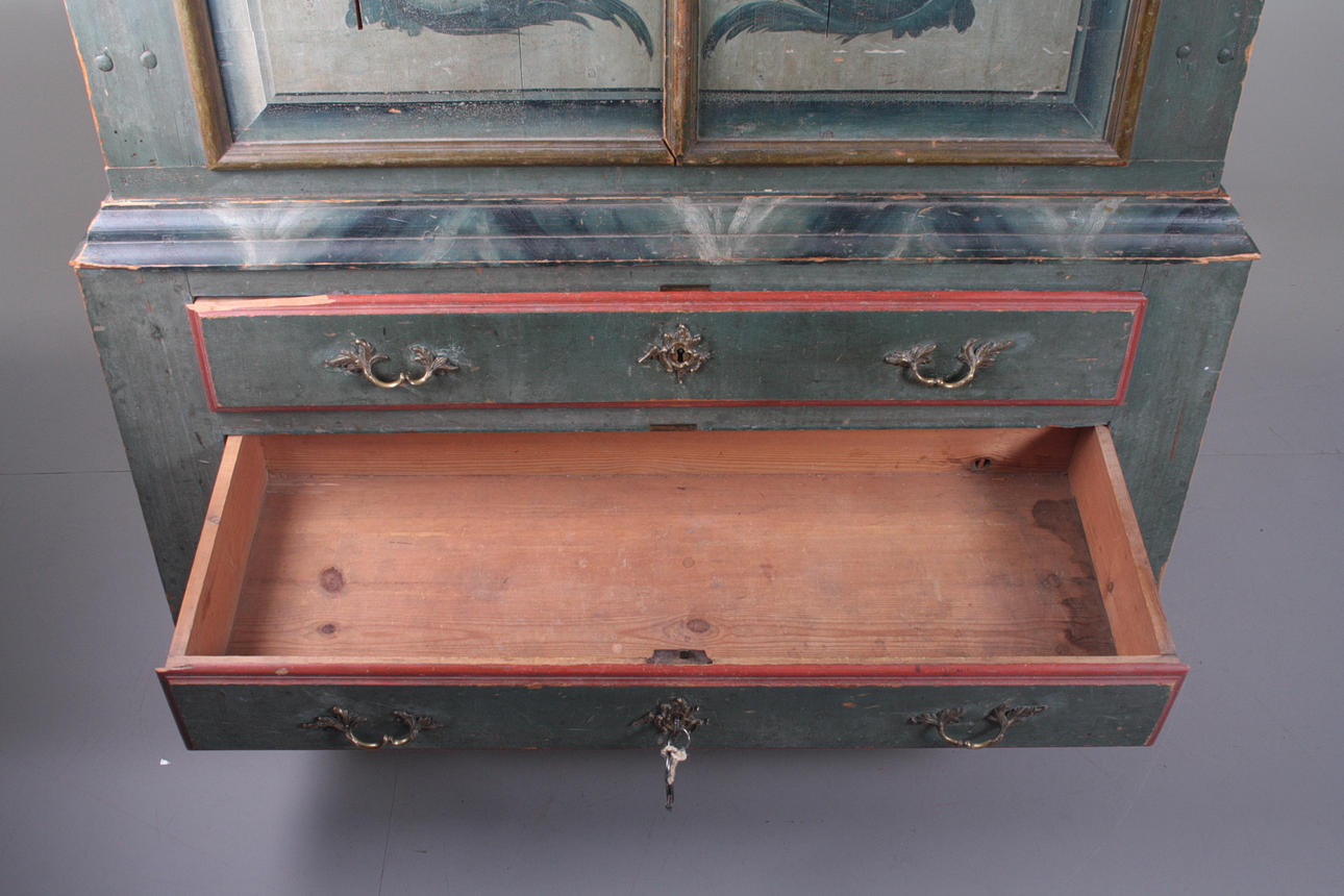 Skåpet är från Jämtland, tillverkat i Haga, Lockne socken.