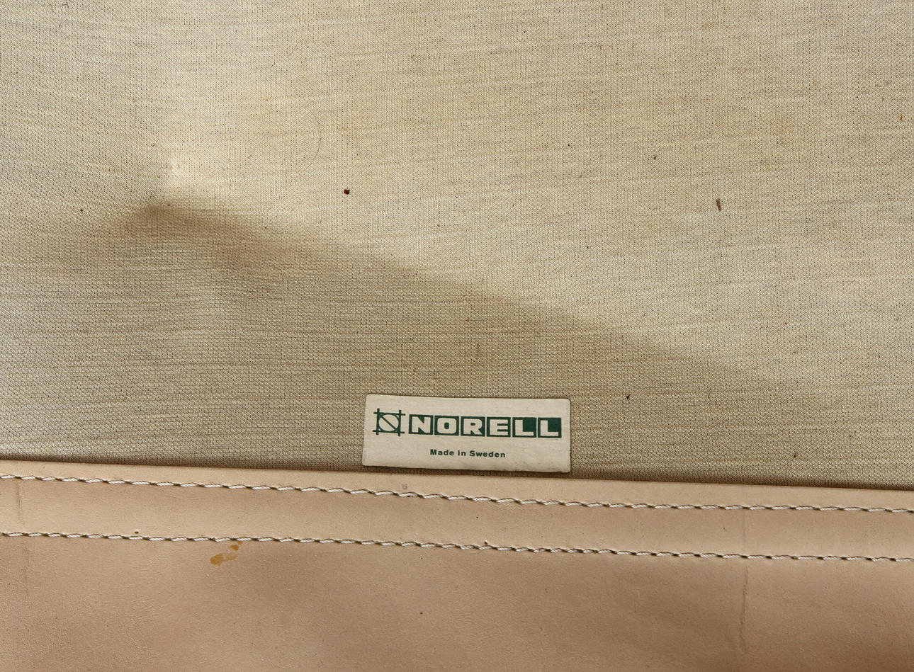 Ljust läder med metallspännen på trästomme. Längd ca 145 cm.