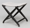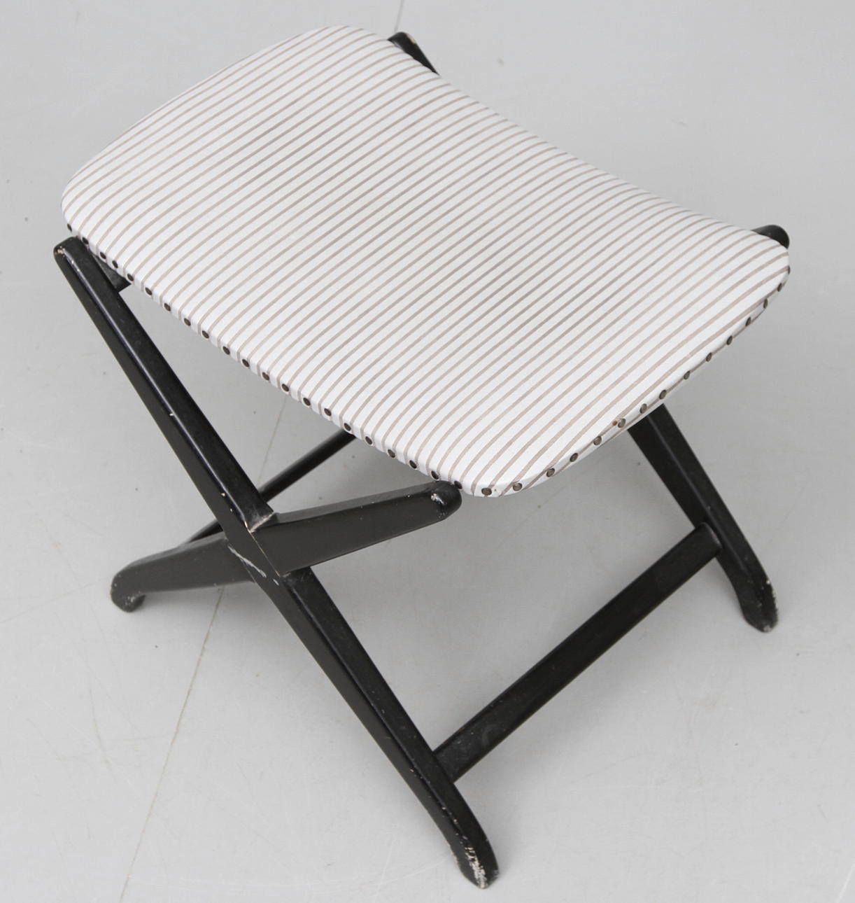 Kryssformat ställ i svart, sits i grå galon. Längd 50 cm.