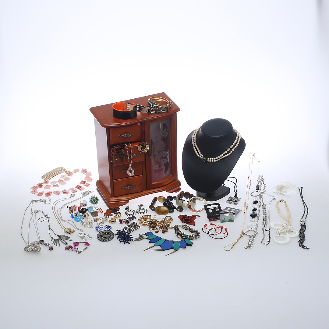 515739. PARTI BIJOUTERIER samt SMYCKESKRIN, 1900/2000-tal.