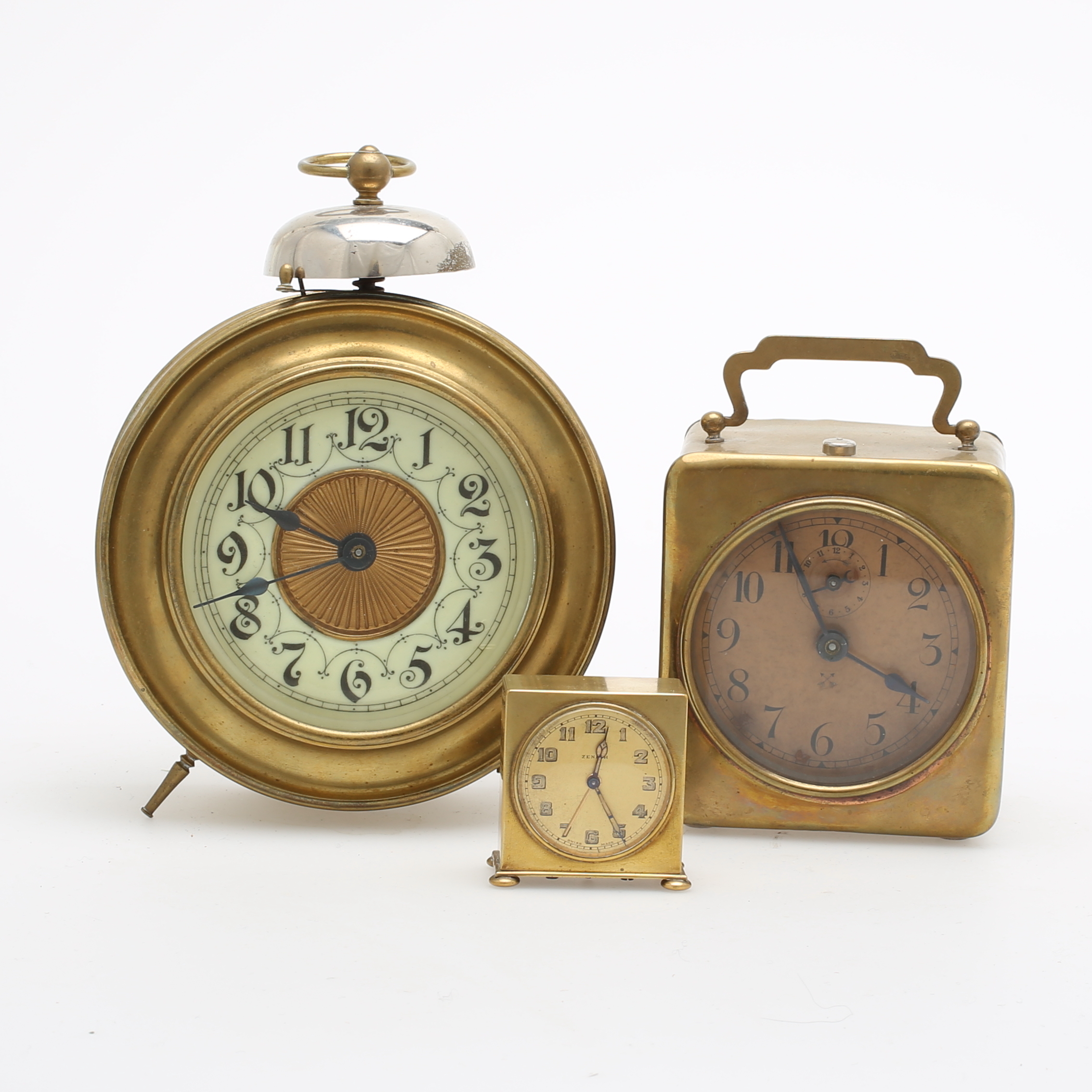 515964. VÄCKARKLOCKOR, 3 st, mässding, bl a Zenith.
