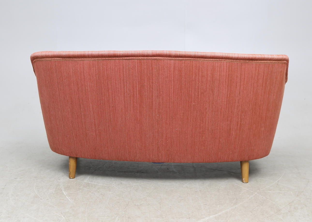 Längd ca. 150 cm. Höjd ca. 75 cm Svängd modell med original textilklädsel. Brickmärkt.
