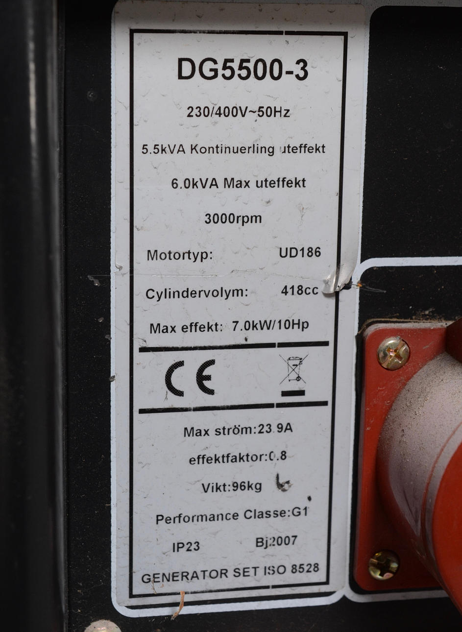Dieseldrivet.Max effekt 7KW. 10HP.
