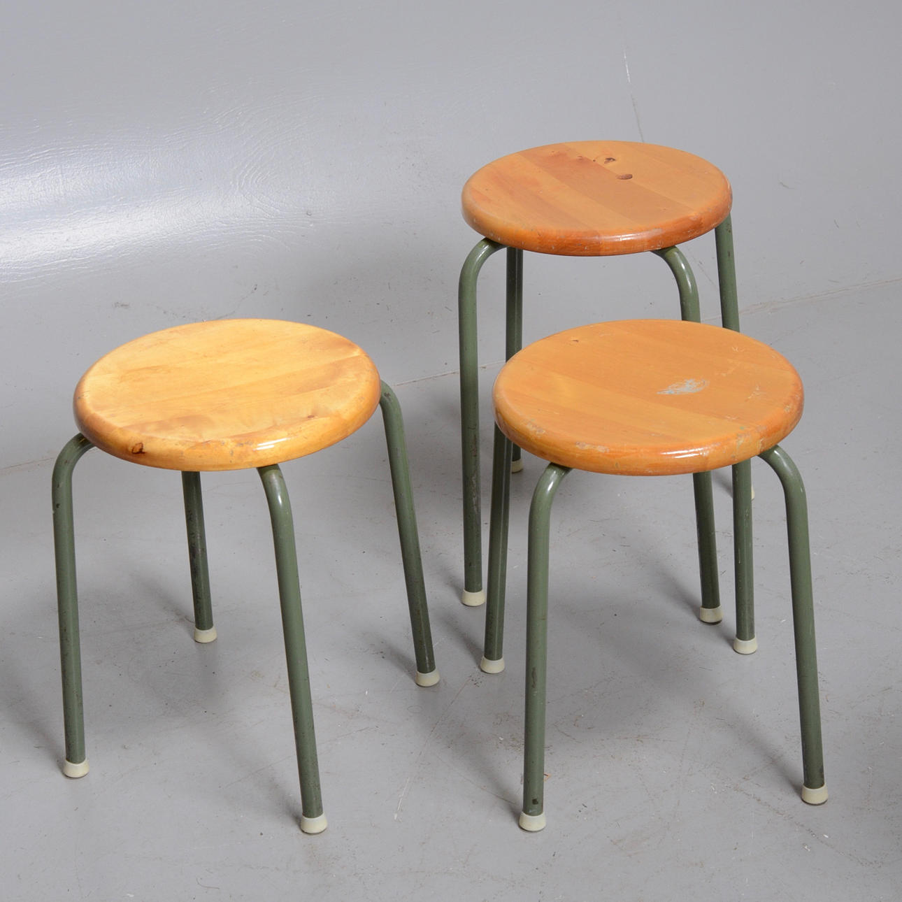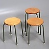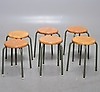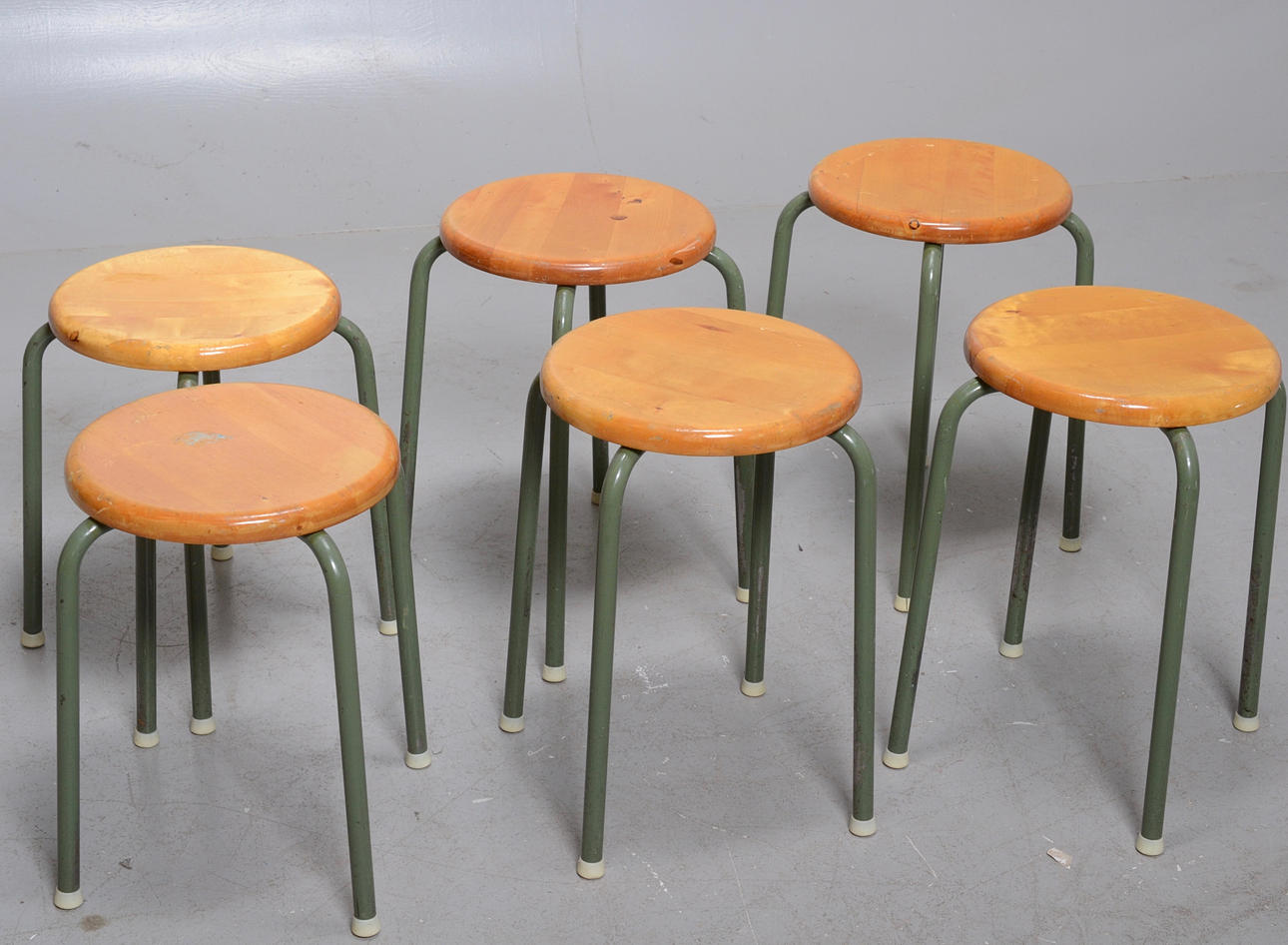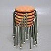 6 st, stålställning och träsits. Höjd 50 cm, diameter 32 cm.