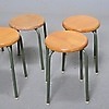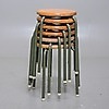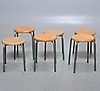 6 st, stålställning och träsits. Höjd 50 cm, diameter 32 cm.