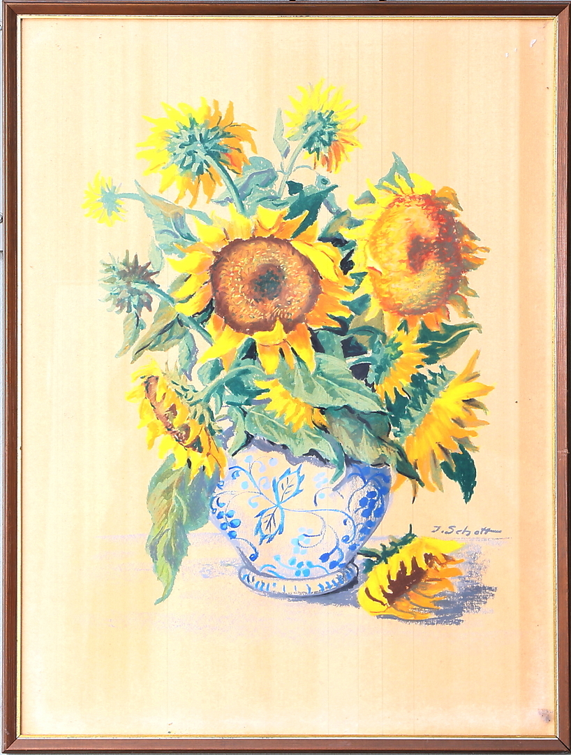 516945. JOSEF SCHOTT. Solrosor, akvarell, signerad.