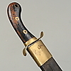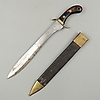 Faskinkniv med balja i läder med beslag i mässing.