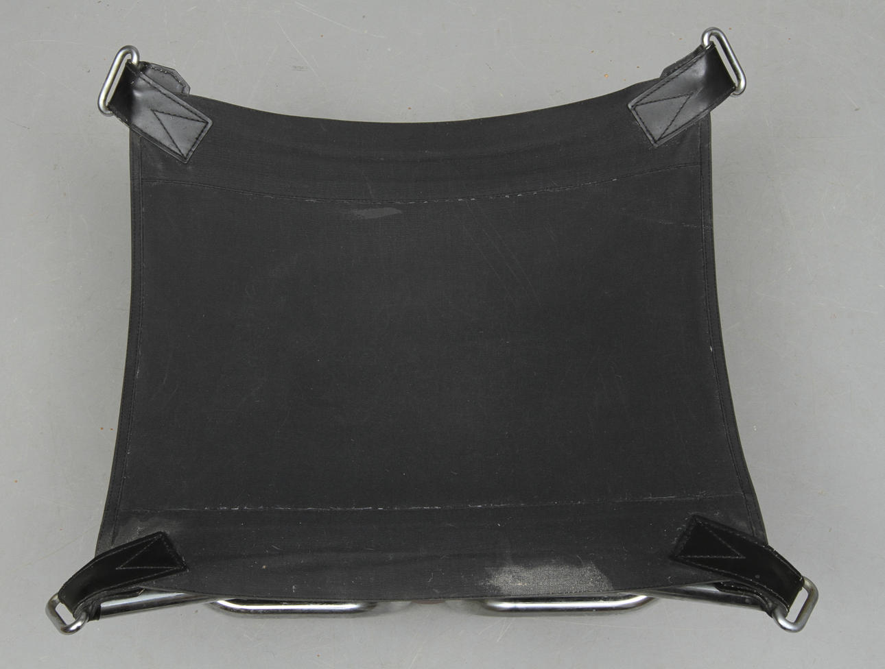 Stålrörsställning och skinnklädsel. Längd 60 cm.