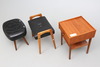 2 TABURETTER, samt nattbord 1950-tal.