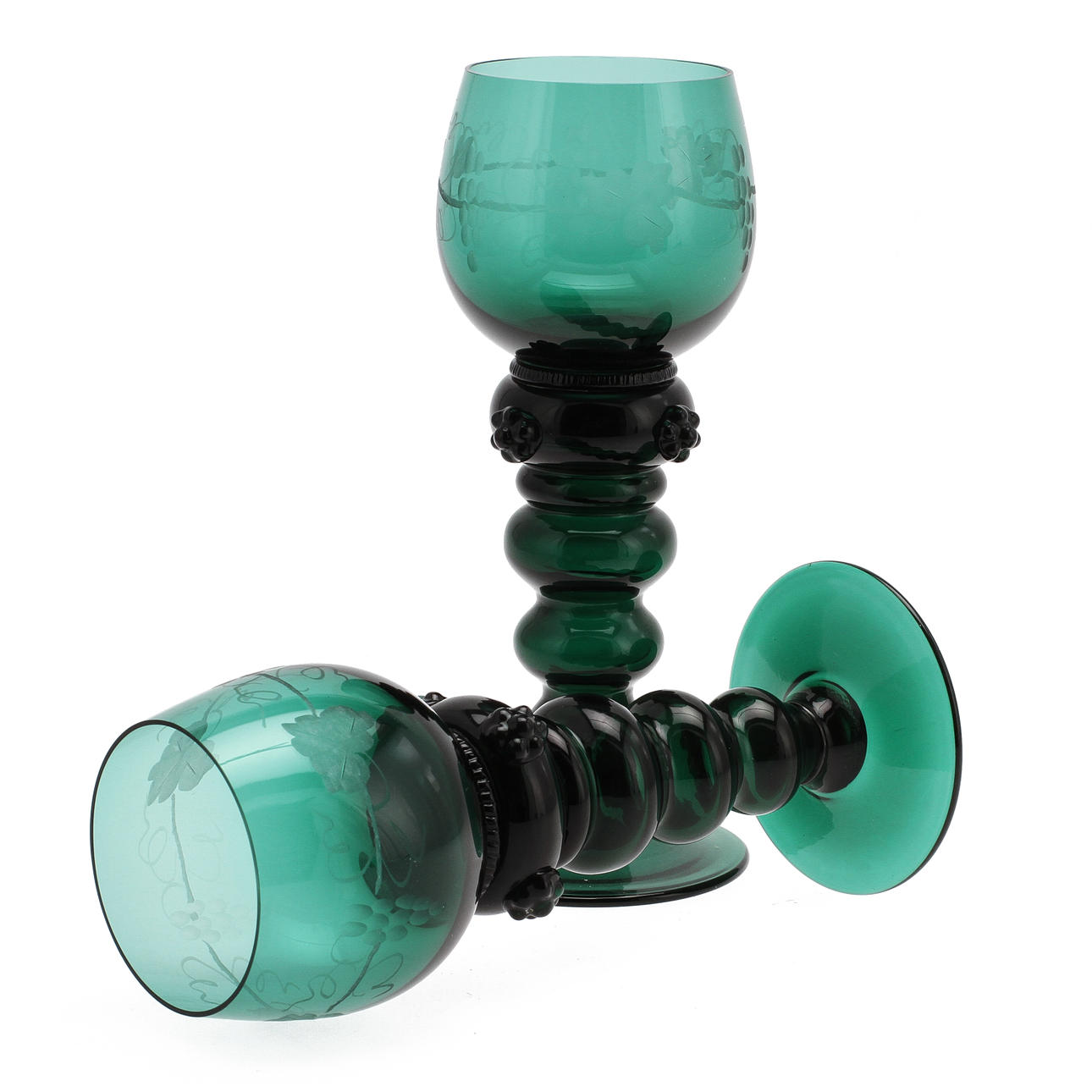 Gröntonat glas med dekor av vinranka. Höjd 18 cm.