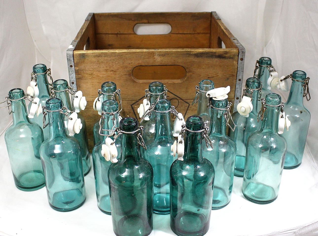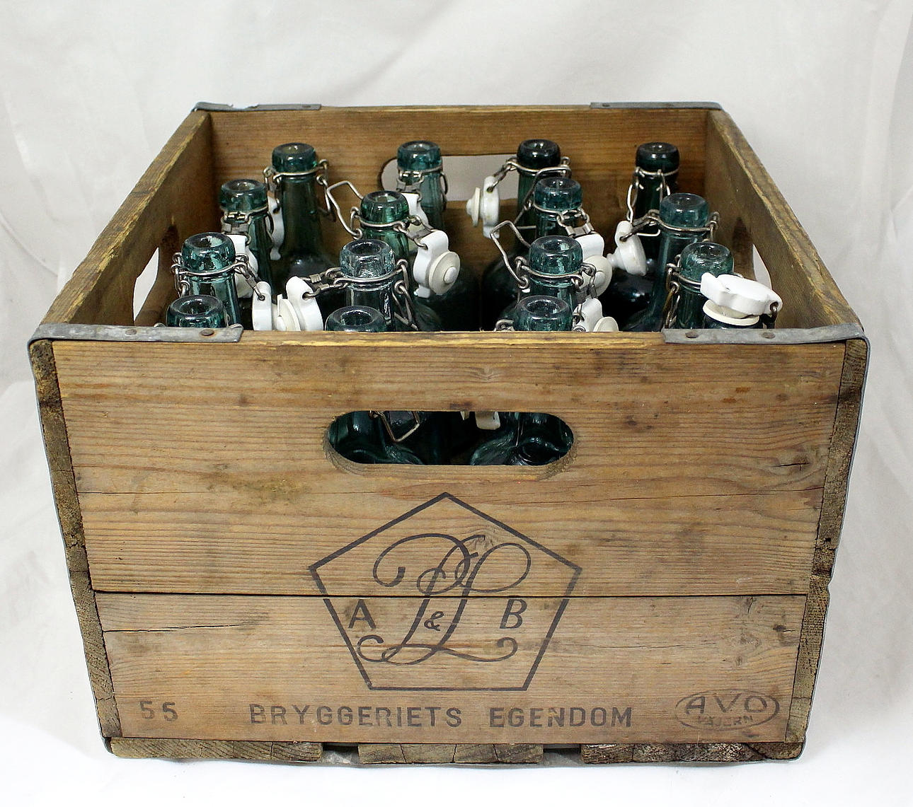 519795. SOCKERLÅDA, DRICKABACK, 16 st flaskor.