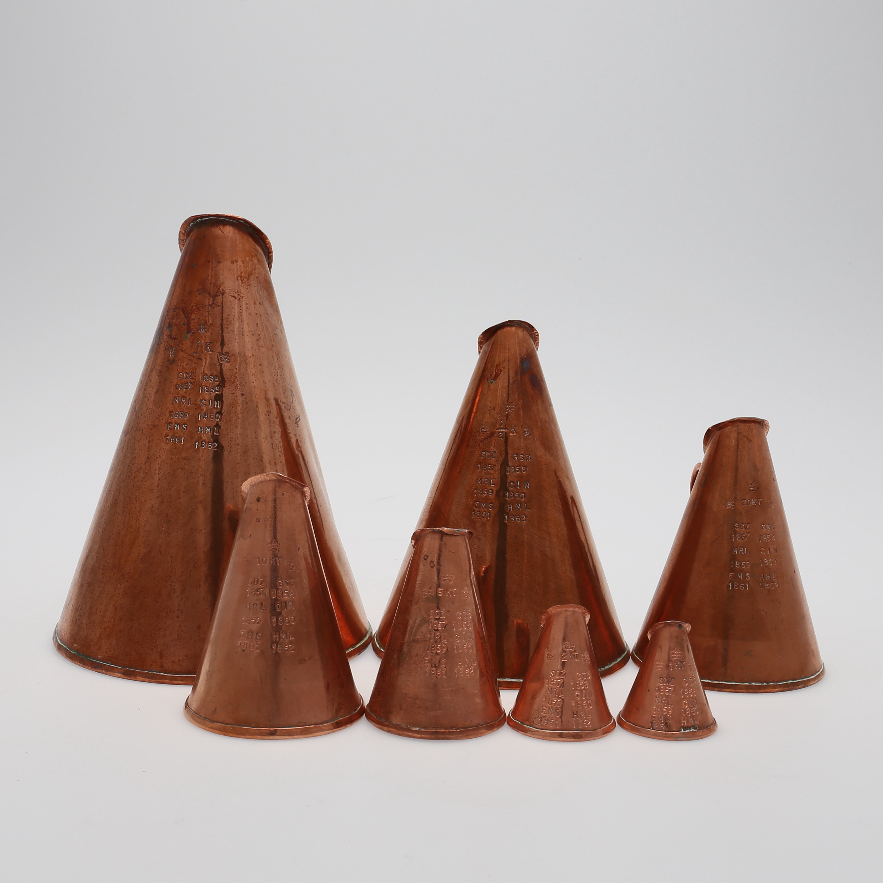 520079. MÅTTSATS, koppar, 7 delar.