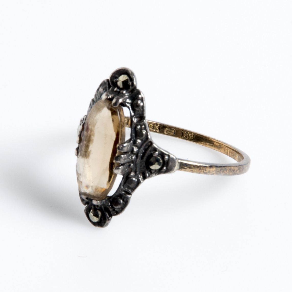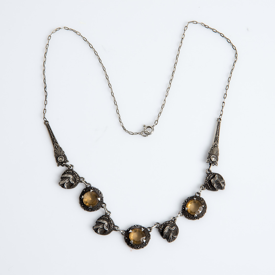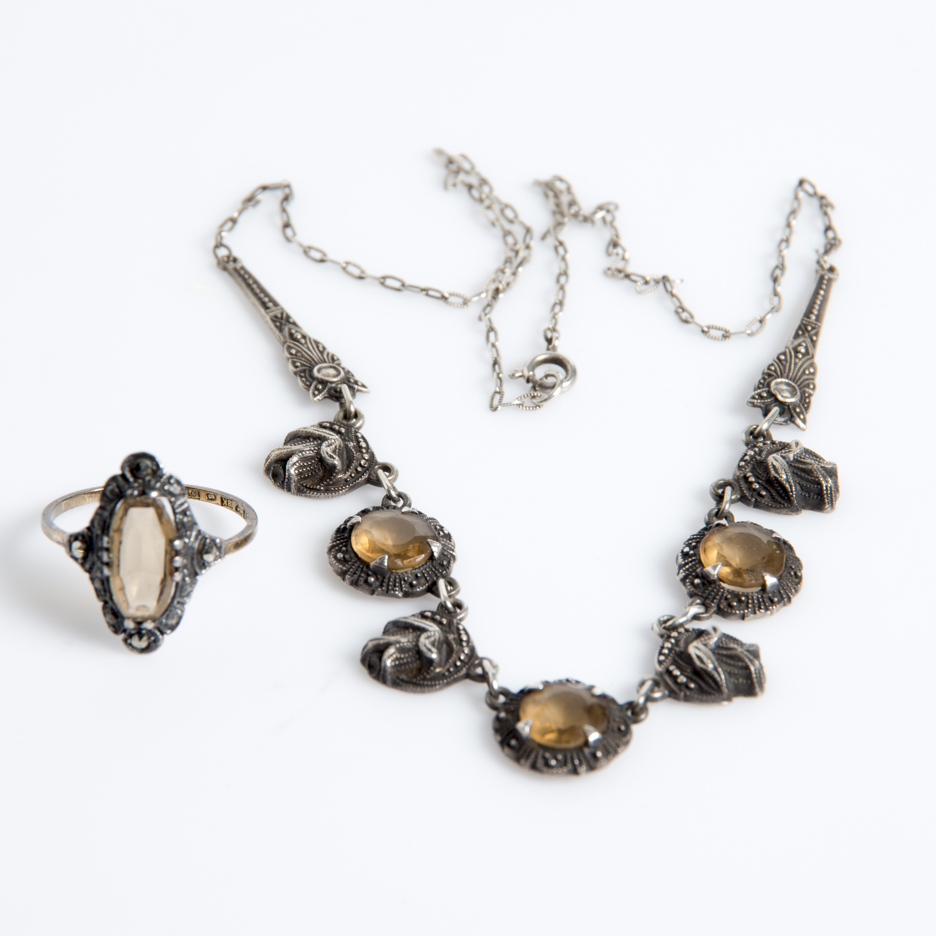 522357. HALSBAND SAMT RING, silver/guld med bruna stenar.