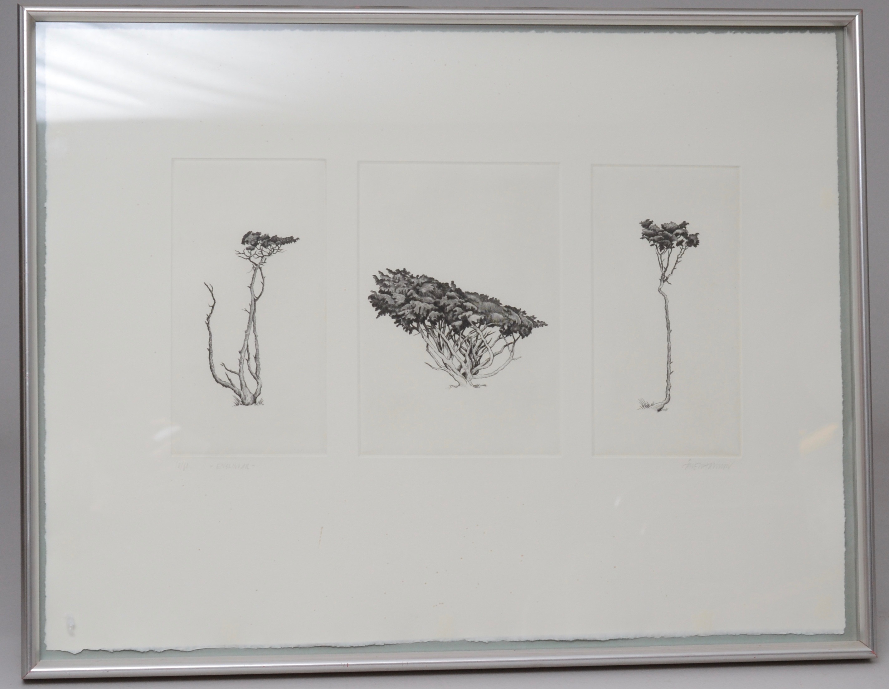 523325. ÅKE JOHANSSON. "Enslingar", etsning, triptyk.