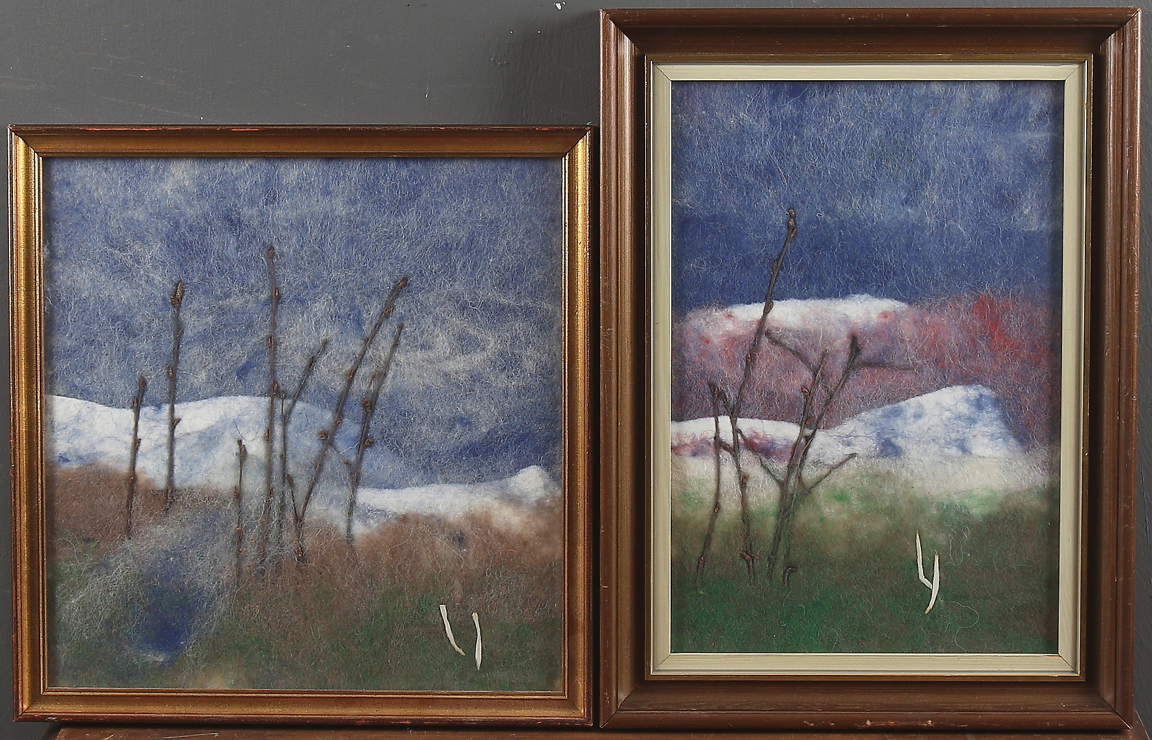 523429. LISA JOHANSSON. 2 st, Vintermotiv, tovad ull, signerade.