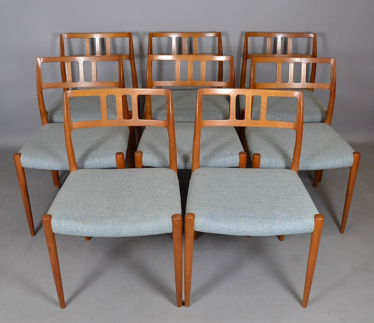 524233. NIELS O. MÖLLER. 8 TEAK STOLAR.