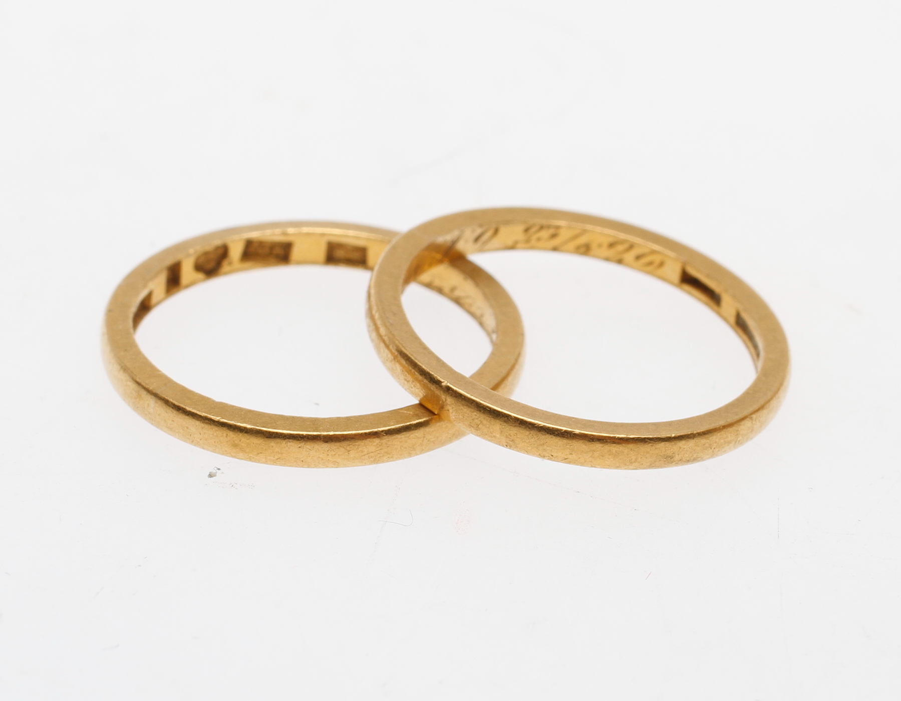 52477. RINGAR, 2 st, 23k guld, vikt ca 7,3 gr.