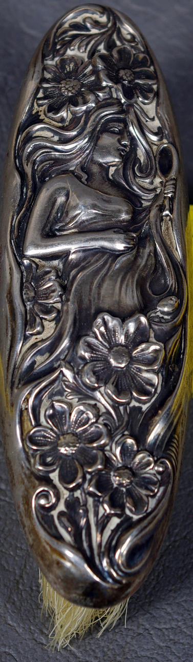 52576. BORSTE, utländskt silver, jugend, 39 gram.
