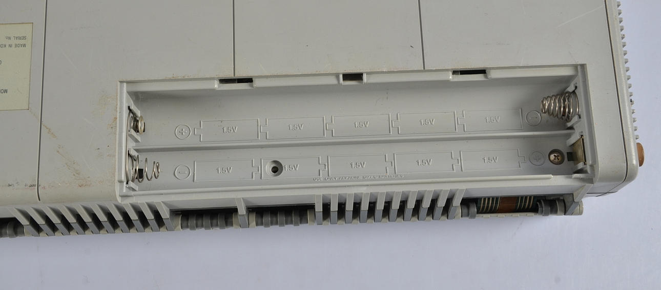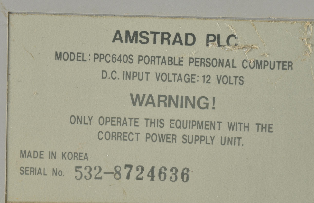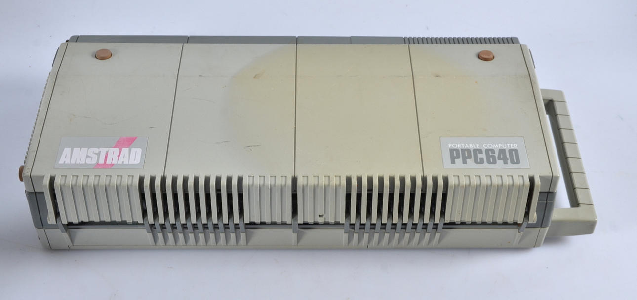 Amstrad PPC 640. Längd 45 cm, djup 23 cm, höjd 10 cm.