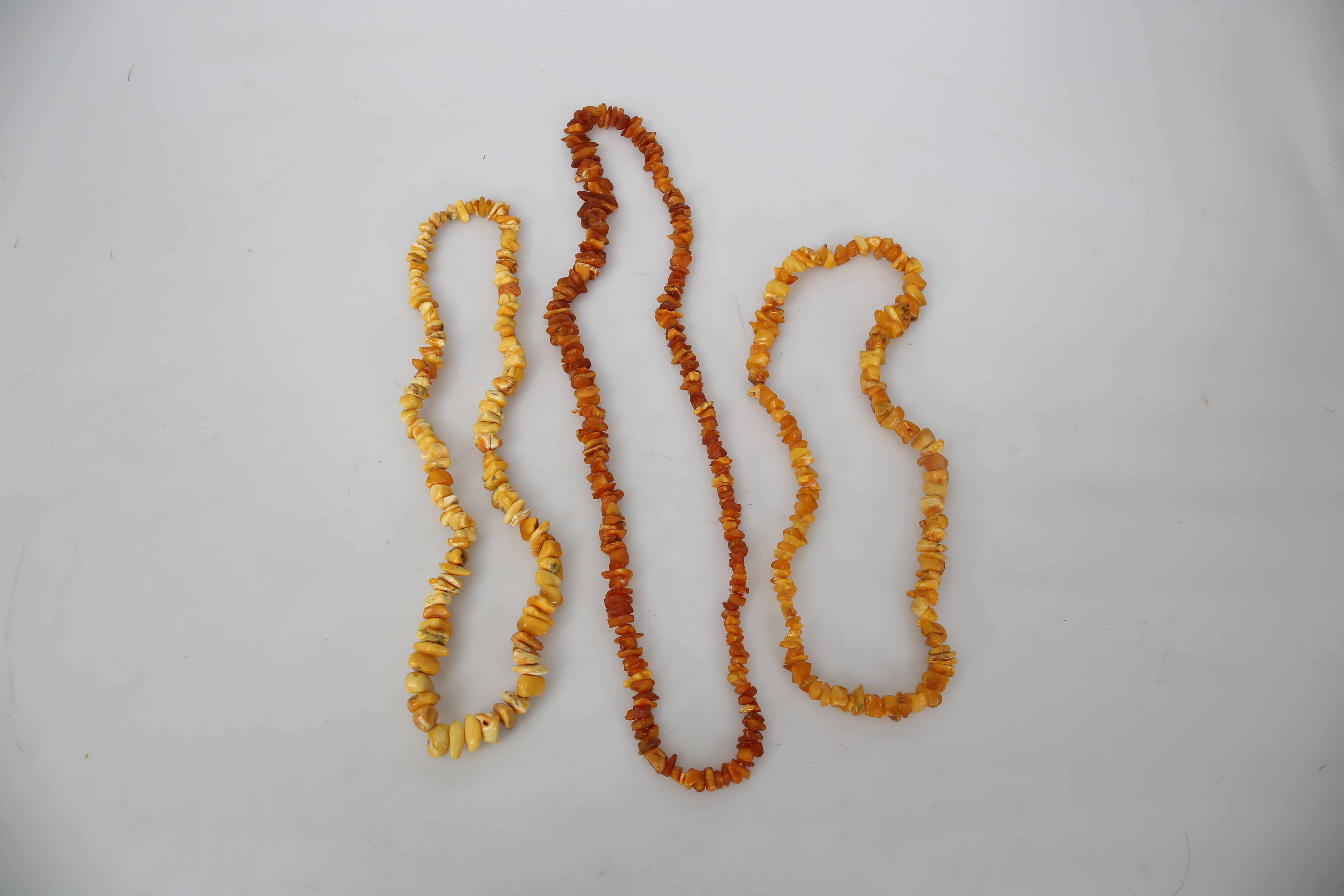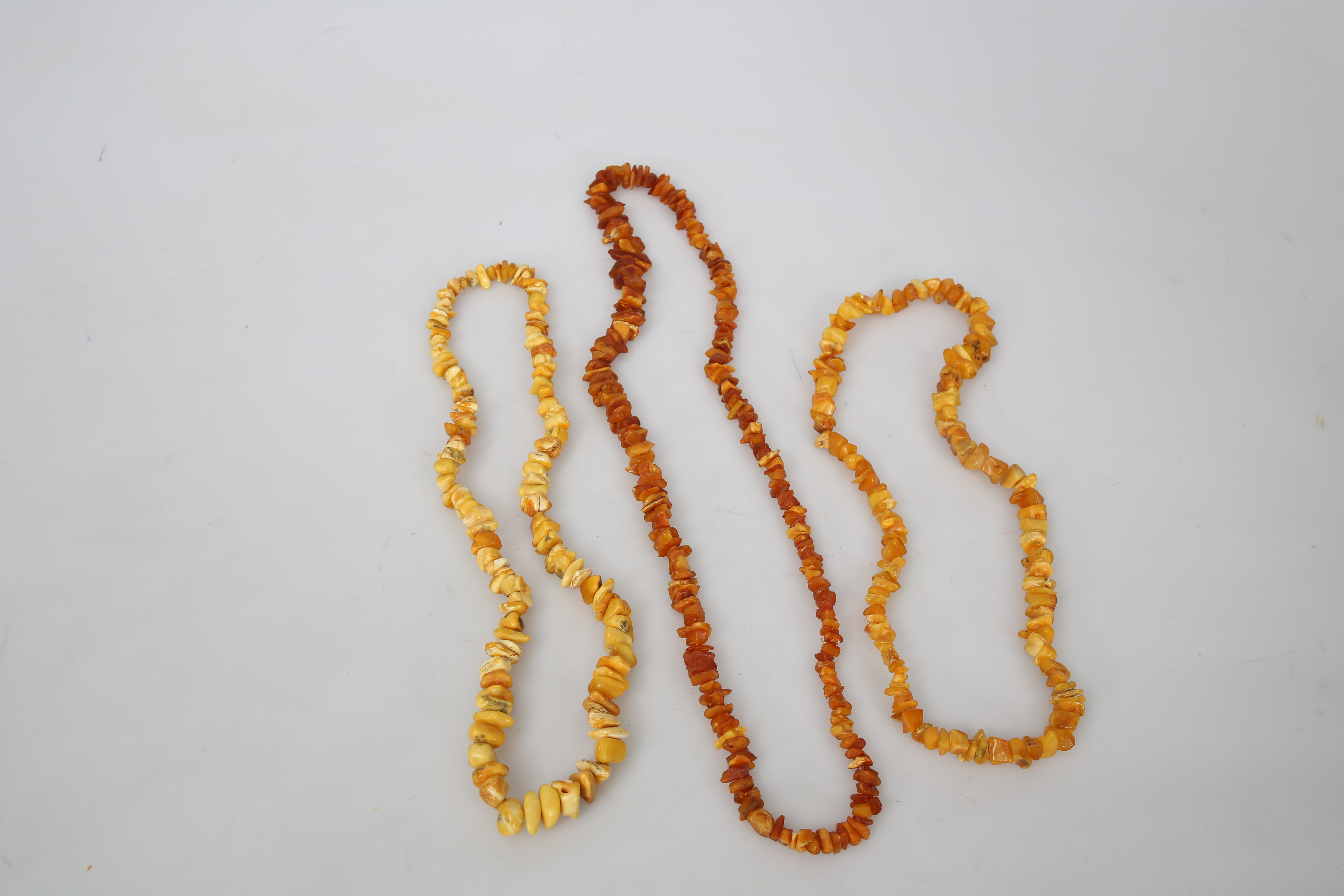 527599. COLLIER, bärnsten, 3 stycken, 1900-talets andra hälft.