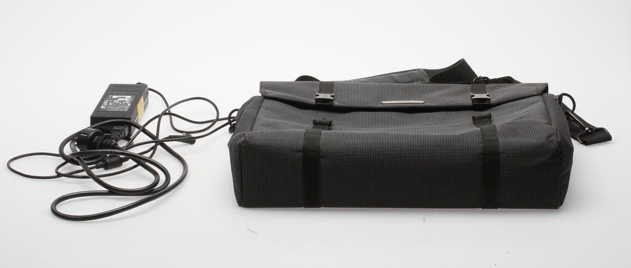 Med laddare och väska.