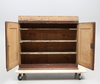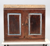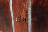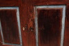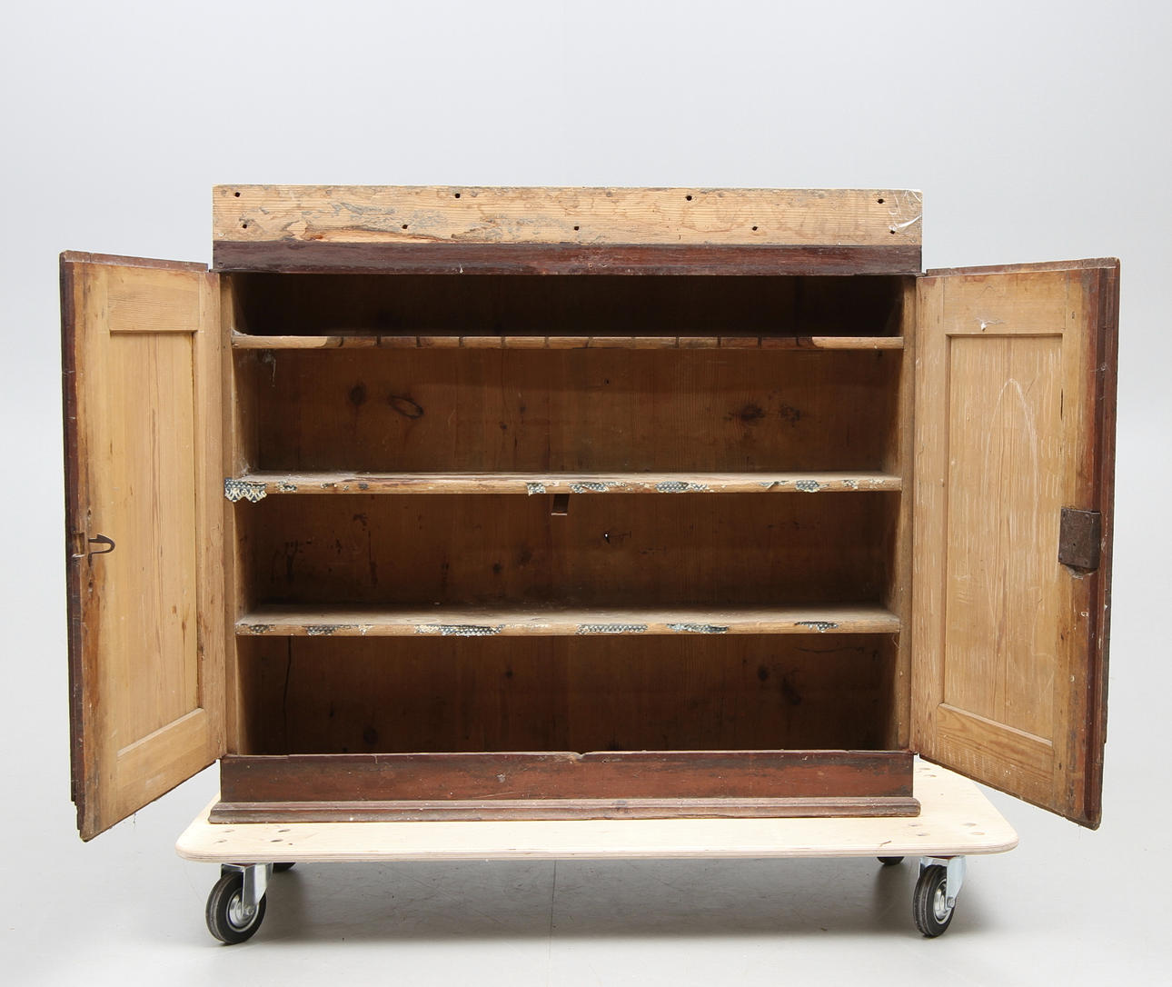 Furu, röd/blå målat, profilerad front. Längd 103, bredd 27, höjd 92 cm.