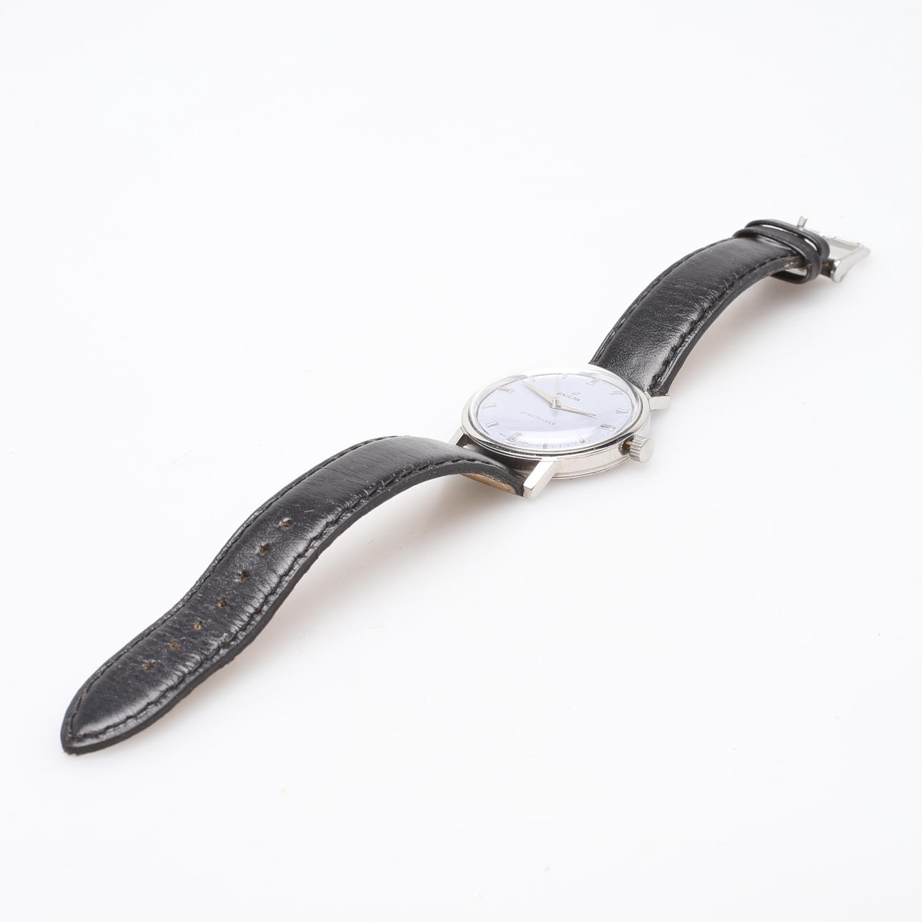Enicar Starjewels herrarmbandsur i stål med läderband, manuellt urverk.