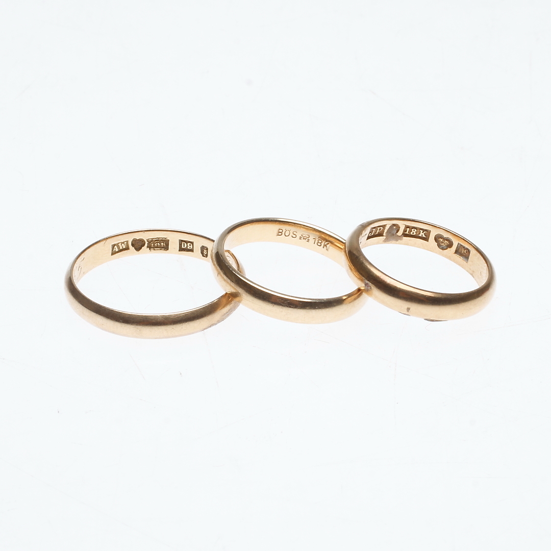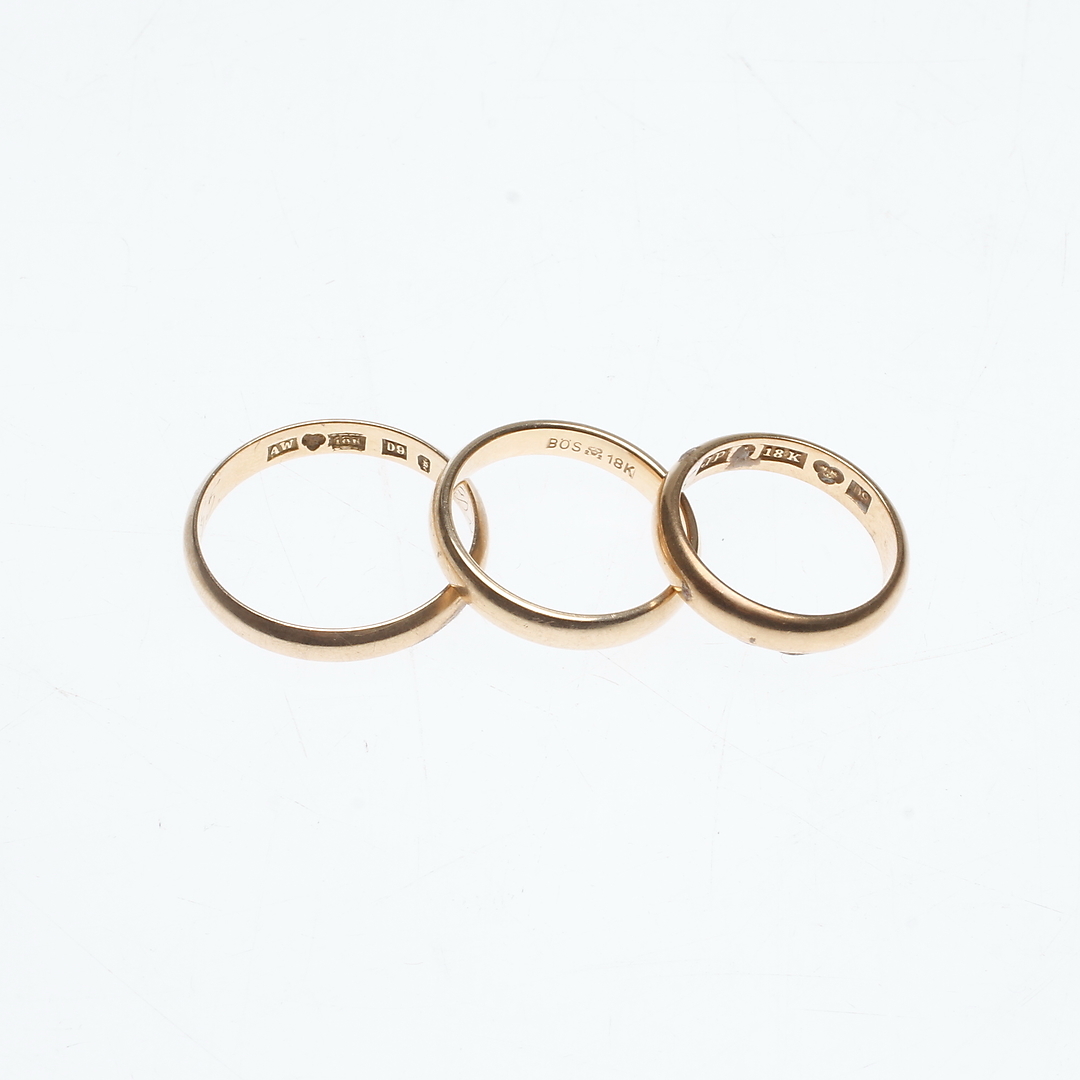 534735. RINGAR, 3 st, guld, 18k, vikt ca. 11,3 gram.