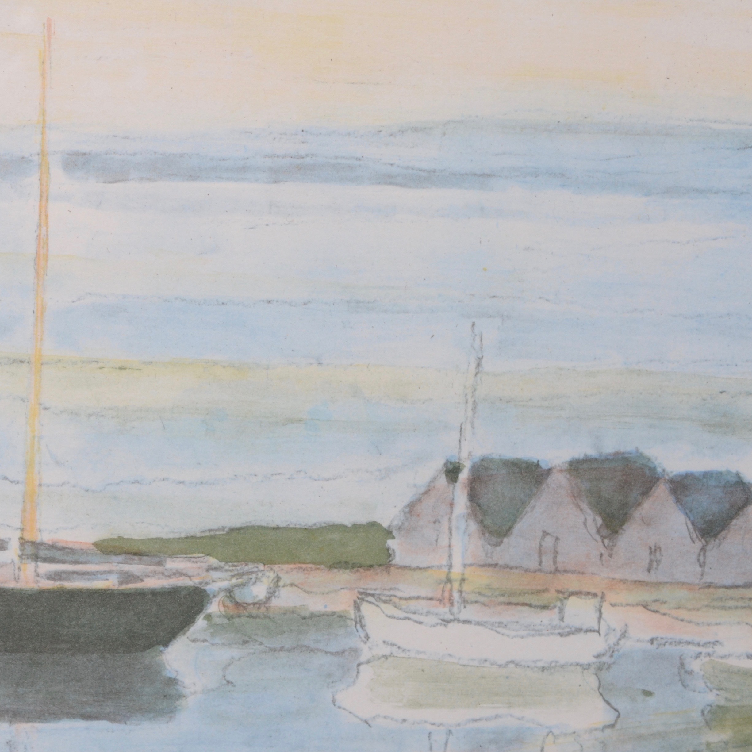 535091. GUSTAV RUDBERG. VY ÖVER HAMN. LITOGRAFI.