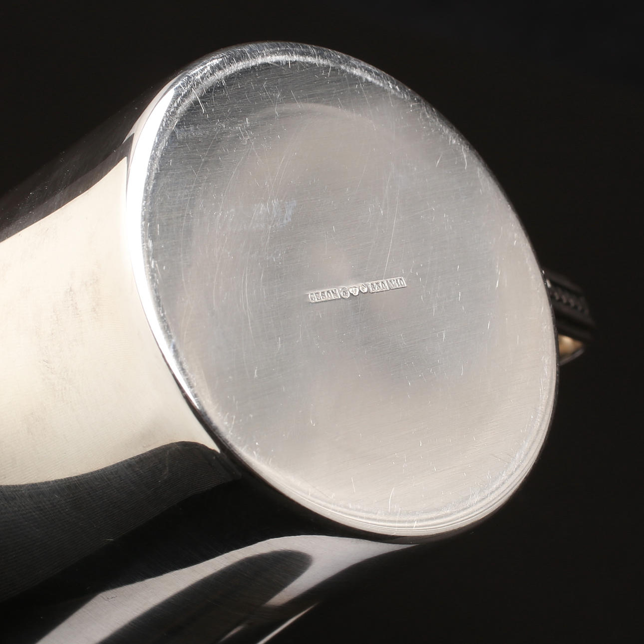 Mugg i silver med dekor på handtaget. Höjd 5,5 cm. Stämplad Ceson, Kattfot, S, 850, V10. Vikt 60 gram.