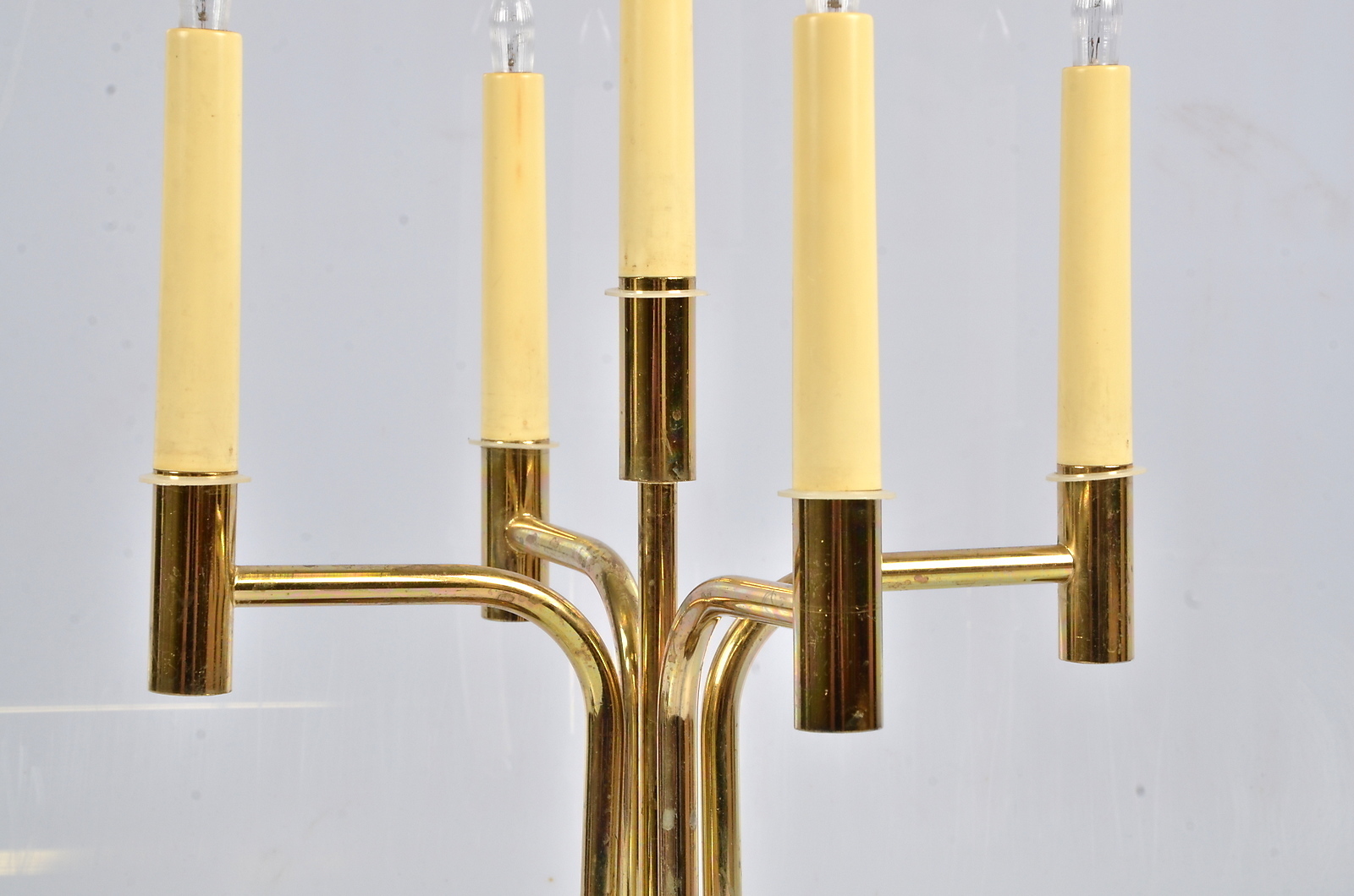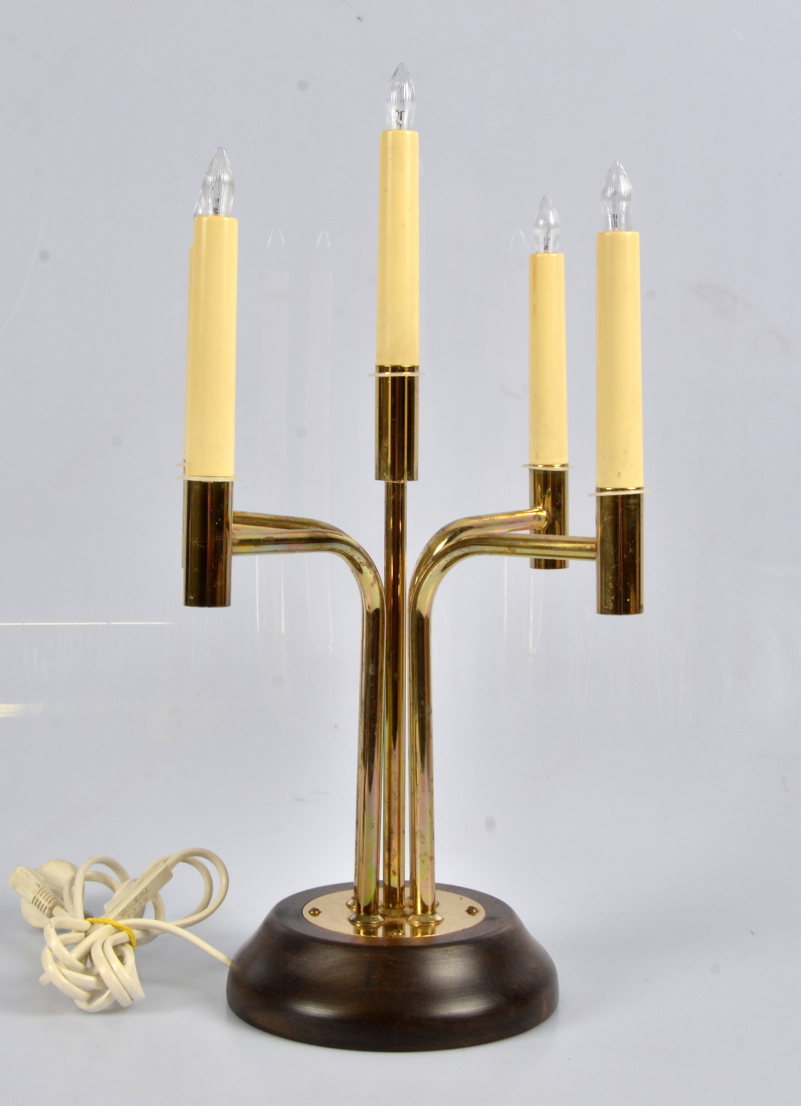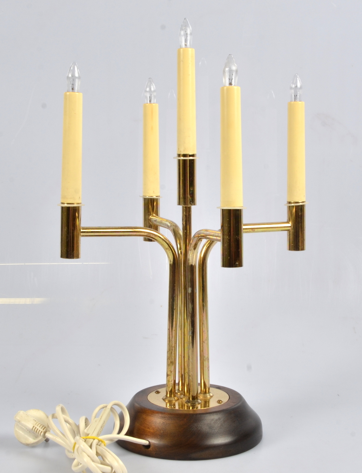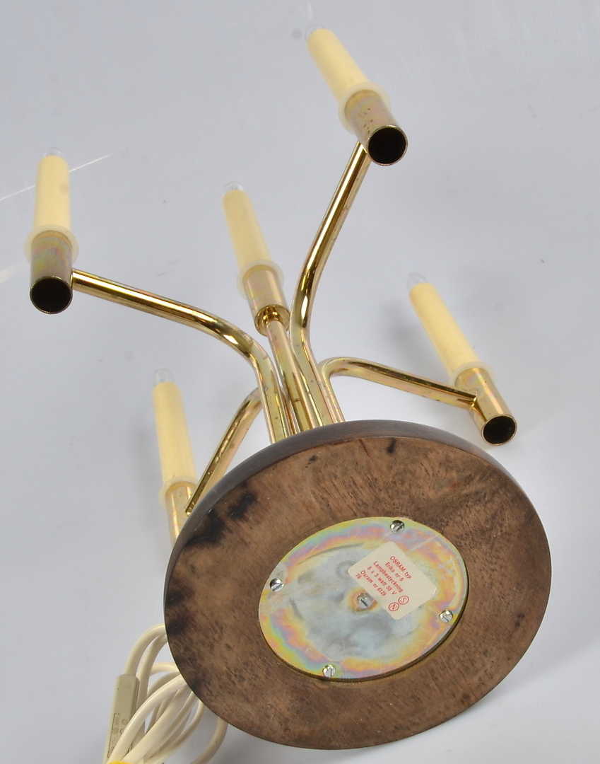535548. LJUSSTAKE, mässing och trä, Osram.