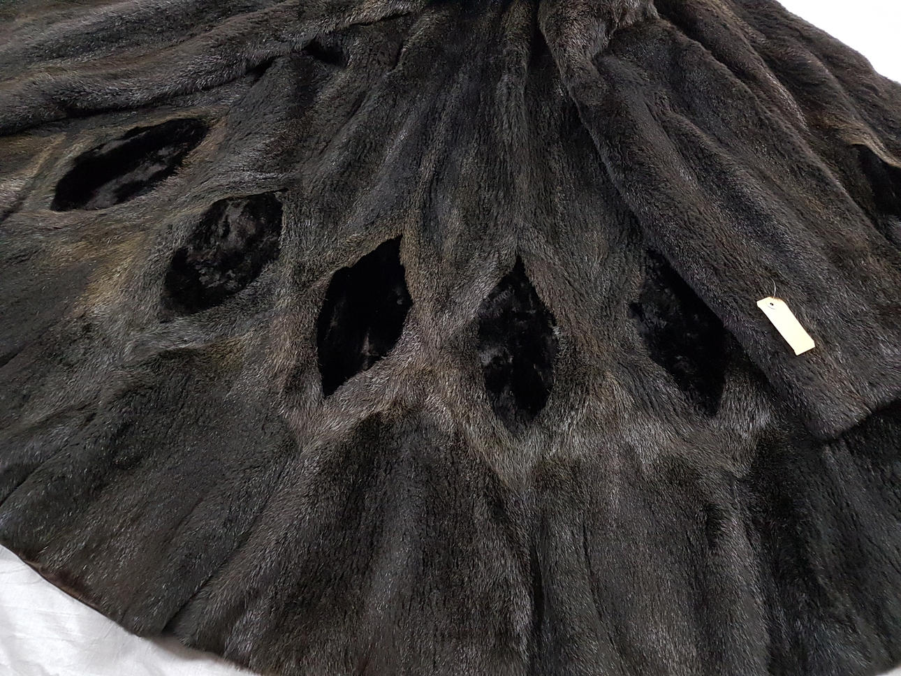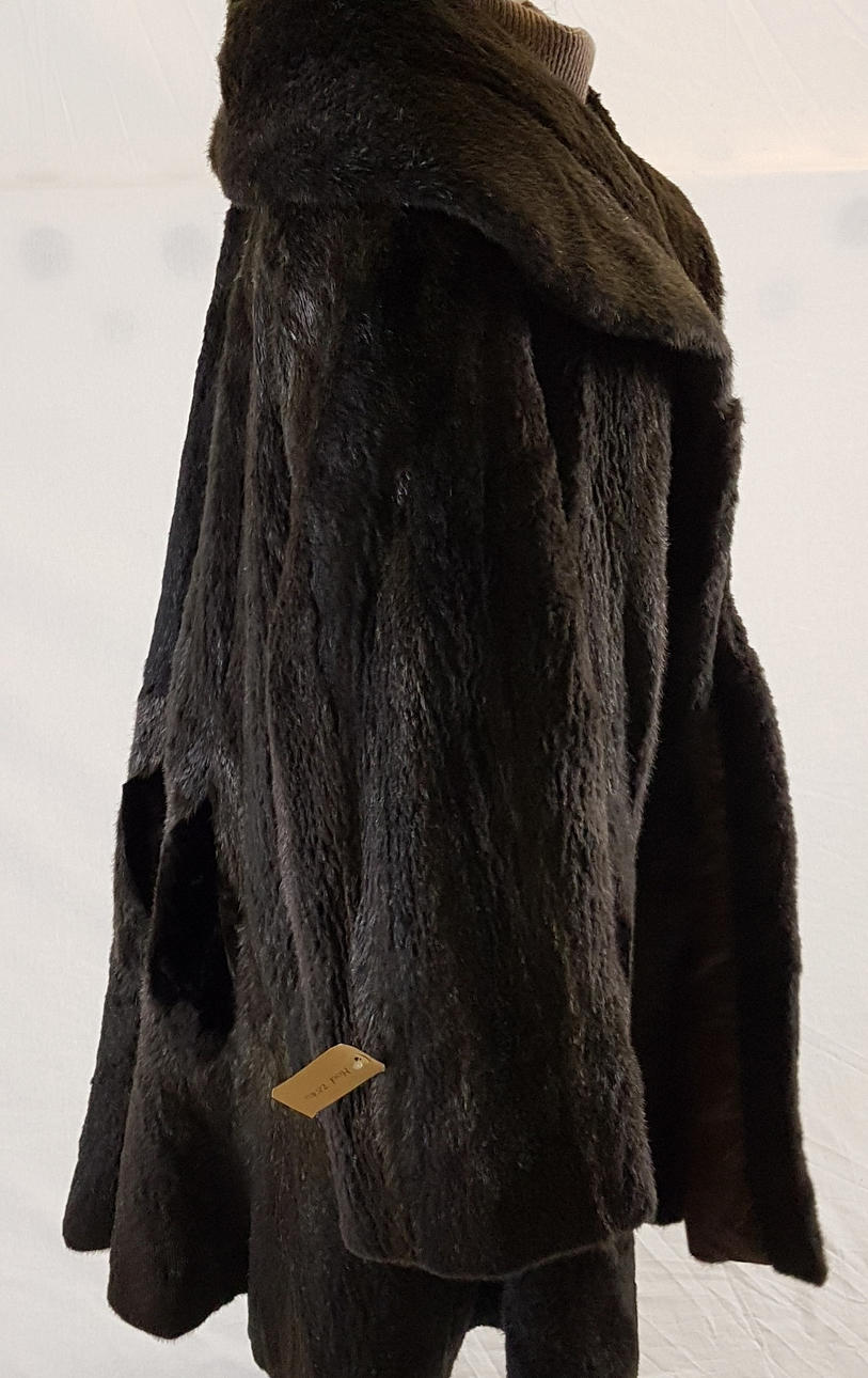 Nutria pälsrock, fin snitt, storlek XL, ca. Storlek: 44, med införda applikationer.