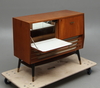 Tidigare radiomöbel. Nyckel finns. Längd 88, bredd 36, höjd 73 cm.