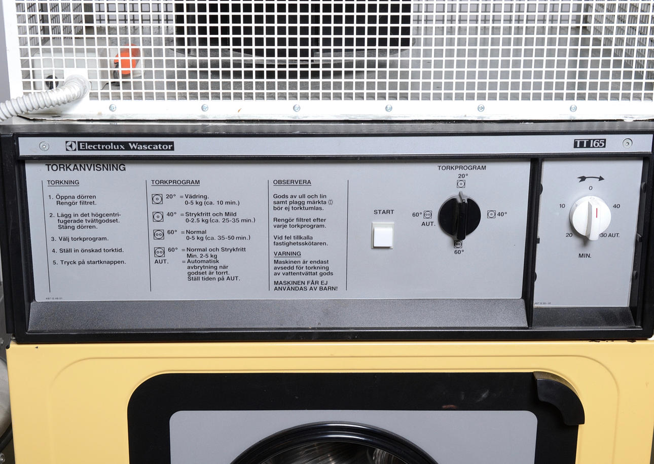 Tvättmaskin Elektrolux Wascator WE66MP/LE. Torktumlare Elektrolux Wascator TT165. Centrifug Podab. Golvstativ medföljer. Torkaggregat till torkrum.