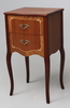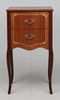 Liten stilbyrå i mahogny med inläggningar. Längd 38, bredd 35, höjd 71 cm.