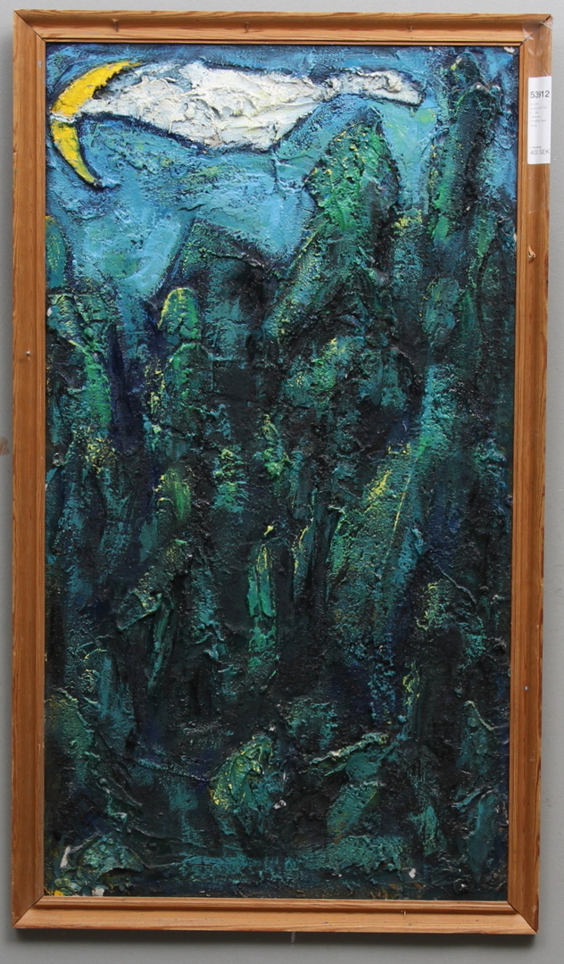 53912. INGRID ALMQUIST;1915-1993. TILLSKRIVEN. NYMÅNE över skog.