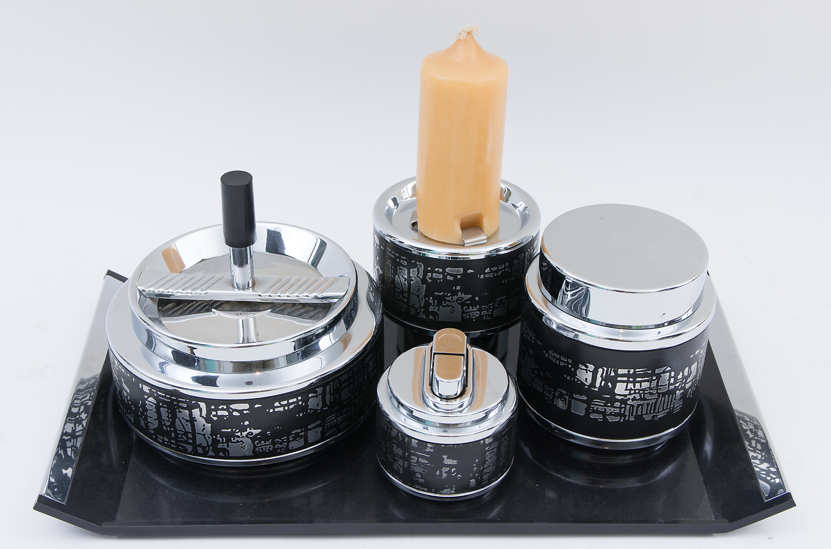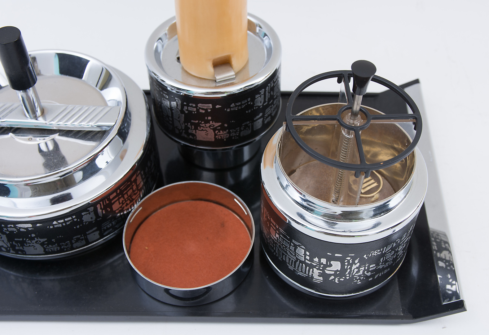 539795. ERHARD UND SÖHNE. RÖKSERVICE, Bernadotte-modell, silverpläterad mässing med bordlå.