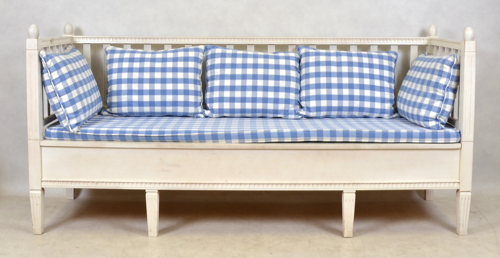 540975. KÖKSSOFFA, vit, gustaviansk stil, 1900-talets andra hälft.