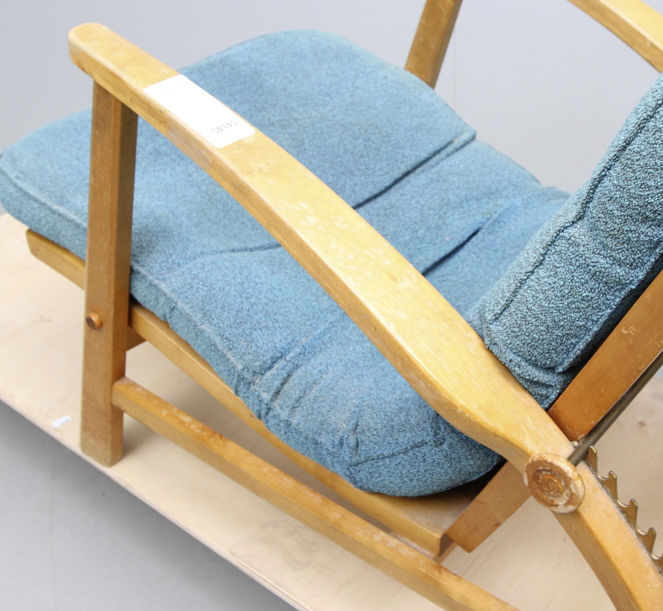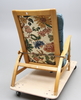 Ställbar konstruktion i björk med lös, stoppad dyna.Längd 62, bredd 100, höjd 90 cm.