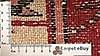 Medaljongmotiv med floral dekor mot röd bakgrund.