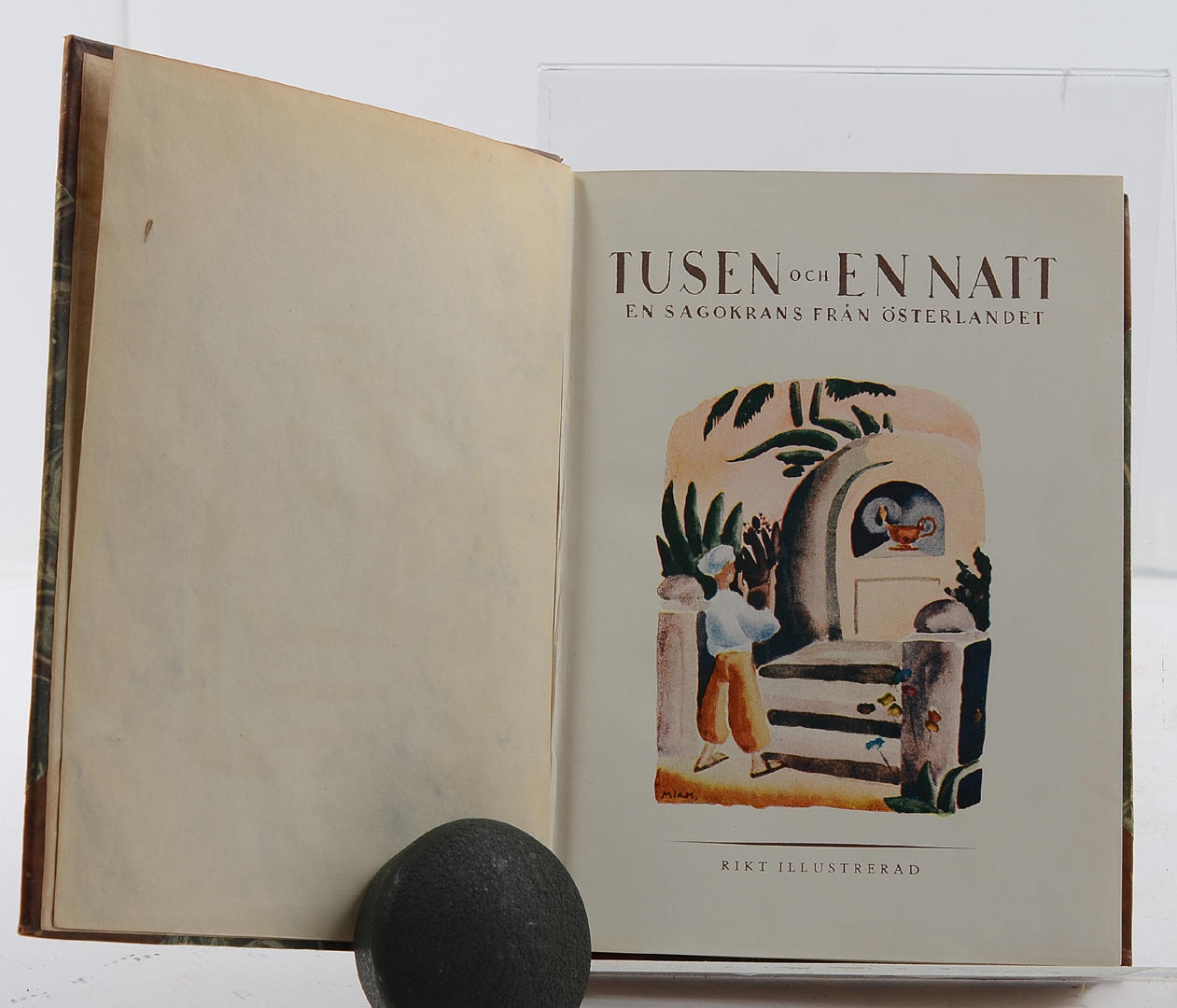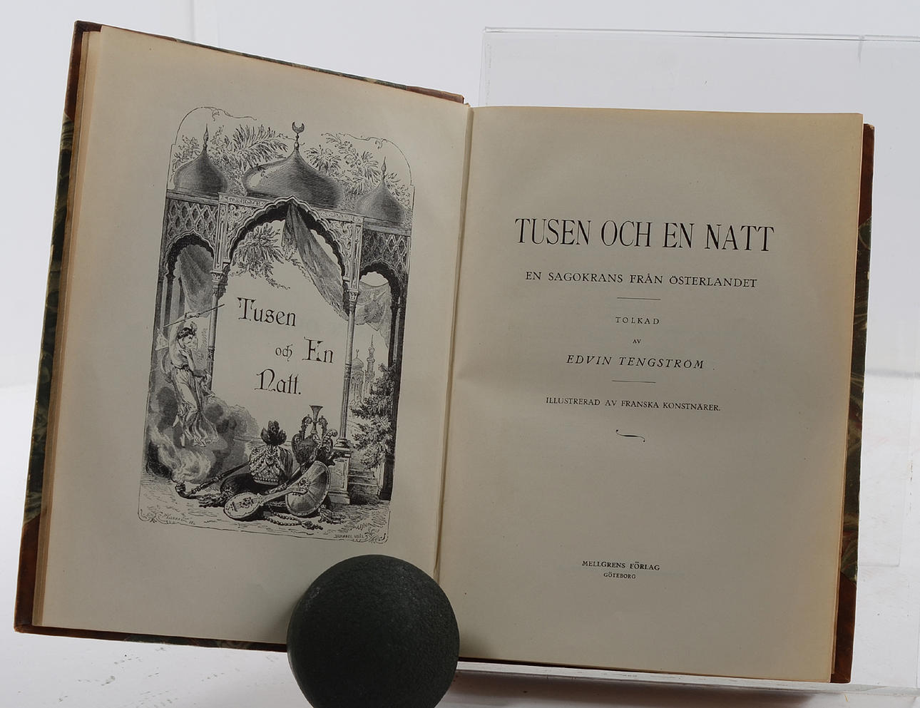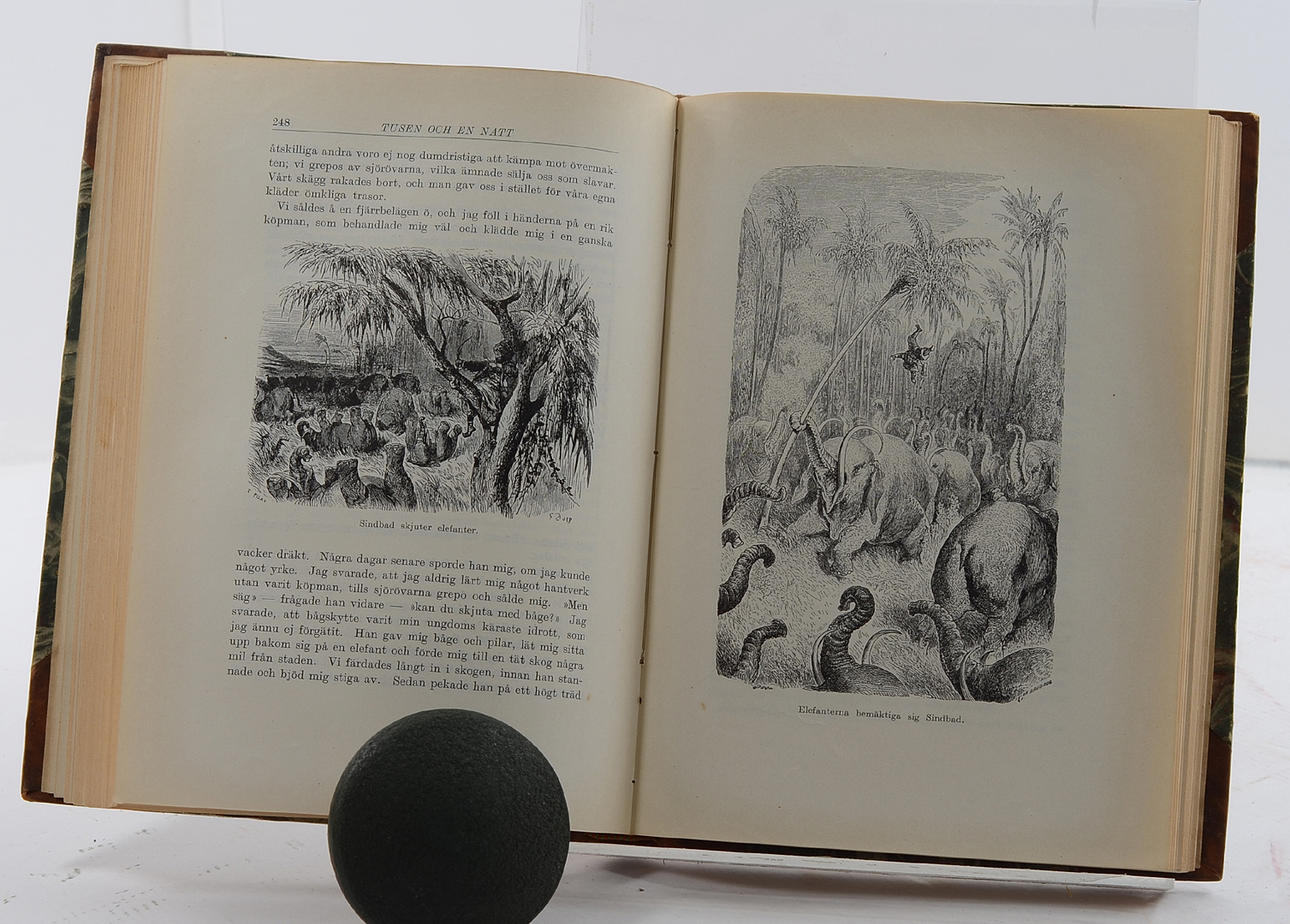 En sagokrans från Österlandet 1 - 4. Mellgrens förlag.Göteborg.1926.Fyra volymer bundna i två halvfranska band. Förgylld ryggtitel. Marmorerade pärmar. Främre orginalomslag medbundna. 253 + 236 + 255 + 227 sidor. Illustrerade.