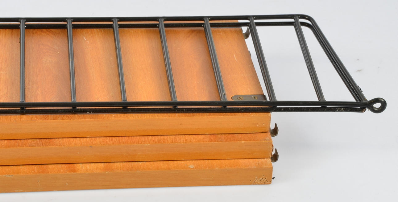 3 hyllplan, gavlar bredd 18 cm, höjd 75 cm. hyllplan, 58x20 cm.